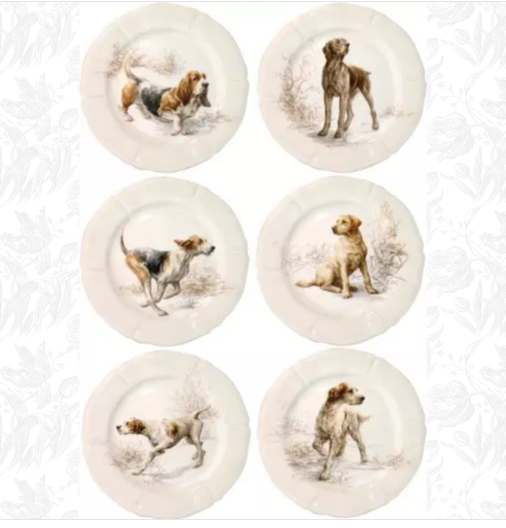 Sologne Assorted Dogs Dessert Plates, Set of 6