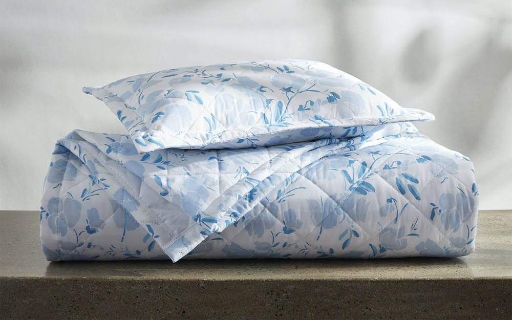 Based on a vintage Parisian find from a similar era as our Margot collection, Alexandra combines a bold approach to scale with fresh, livable colors. Its floral print—on white 500 thread count Luca Egyptian cotton percale finished with an elegant satin stitch—creates a playful look for the whole bed, or it can be used more sparingly as a beautiful accent on shams or sheeting.