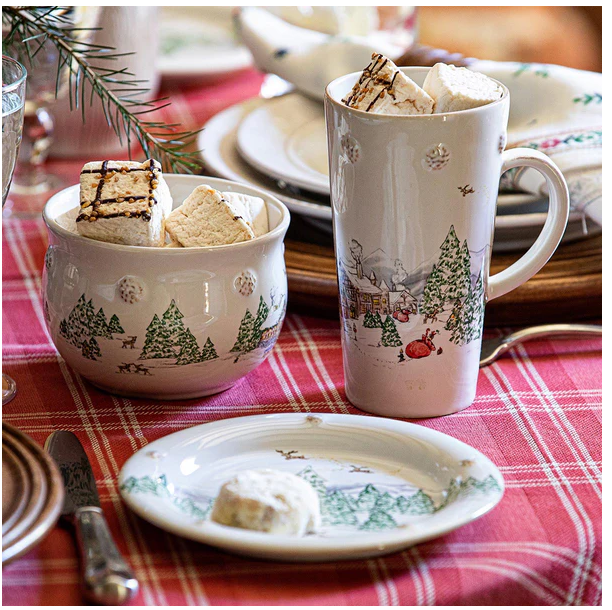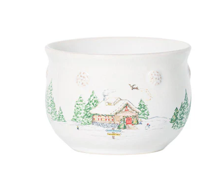 Irresistibly charming, this bowl features a snowy scene from the North Pole and was designed to contain cozy comforts, from homemade soups and stews to Christmas puddings and desserts.
