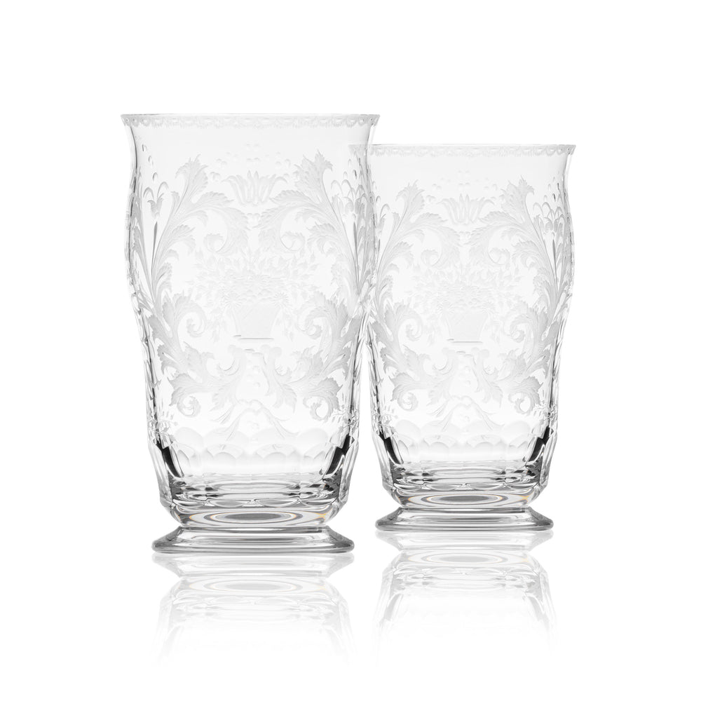 Glasses from the Baroque series from 1936 are a rare Moser heirloom. They are the most technologically demanding artworks the glassworks has ever produced. The shape of the glasses and their rich engraved decor build on patterns characteristic of the 18th century.