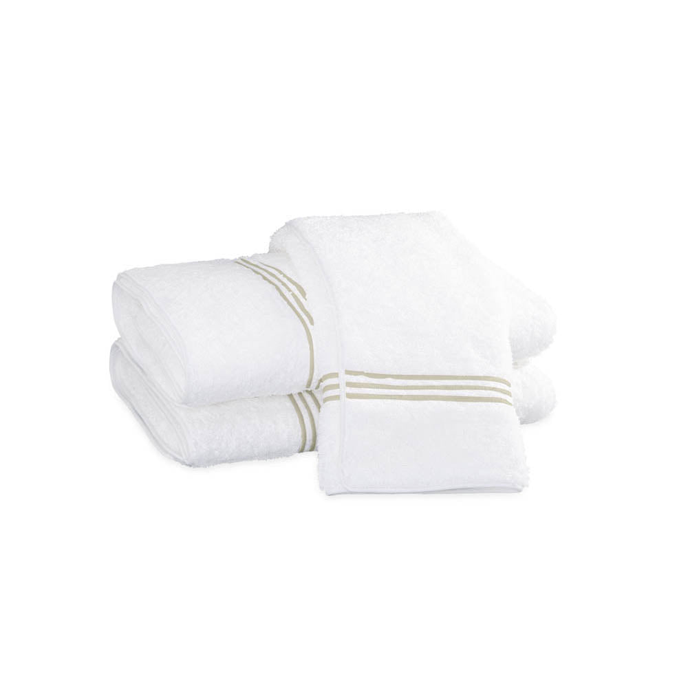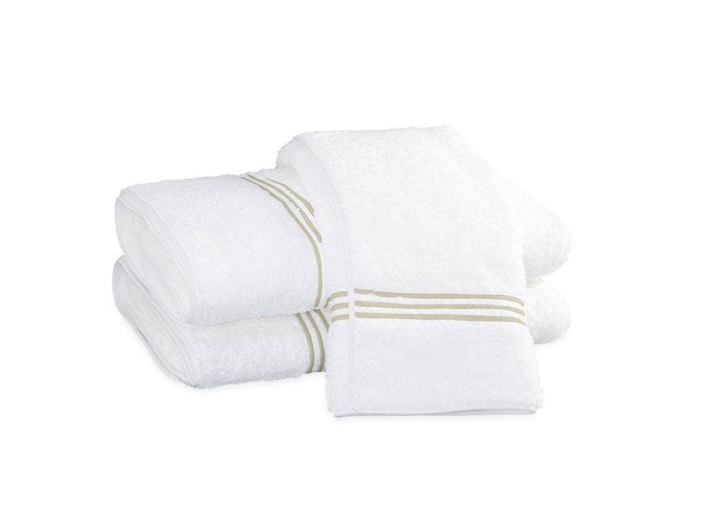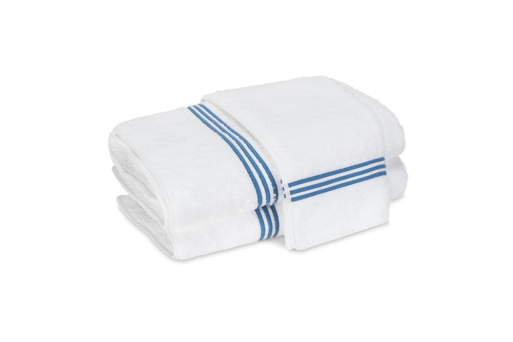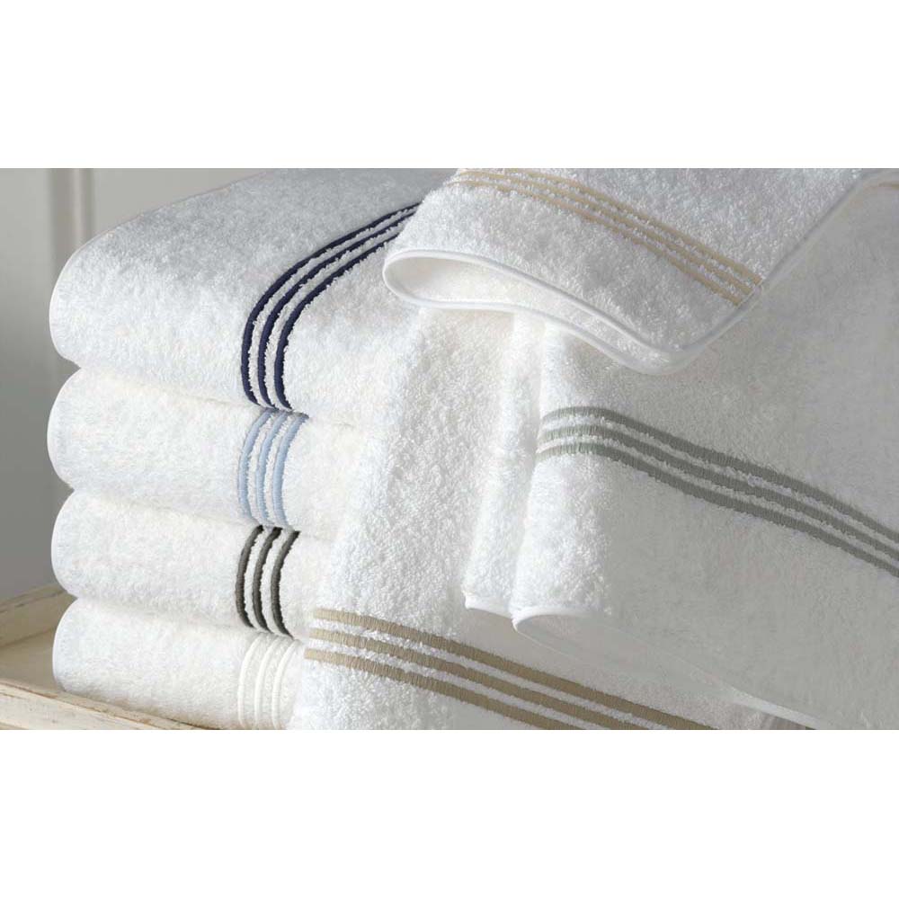 Just as a luxury resort pampers you with quality, your own bath should make every day feel special. Our Bel Tempo tub mat starts with Cairo long-staple cotton terry in brilliant white and is finished with our distinctive trio of lines, neatly embroidered in an elegant palette of colors.
