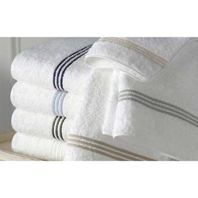 Three rows of elegantly embroidered stripes Navy in luxuriously soft Cairo Egyptian cotton terry.