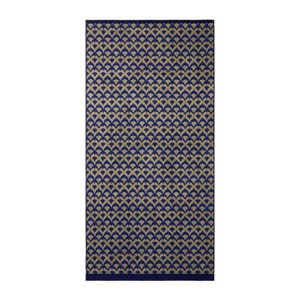 The spring-summer 2024 collection is an invitation to stroll through a botanical garden. Seek shade in the gardens and glimpse the sky through the canopy of foliage bathed in the golden sunlight. A contemporary model in shades of " Yves Klein" Blue and Bronze, with the reverse of the model and its coordinating accessories in a pretty Art Deco style pattern.