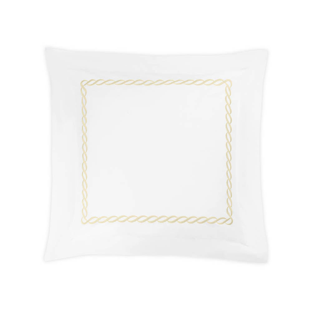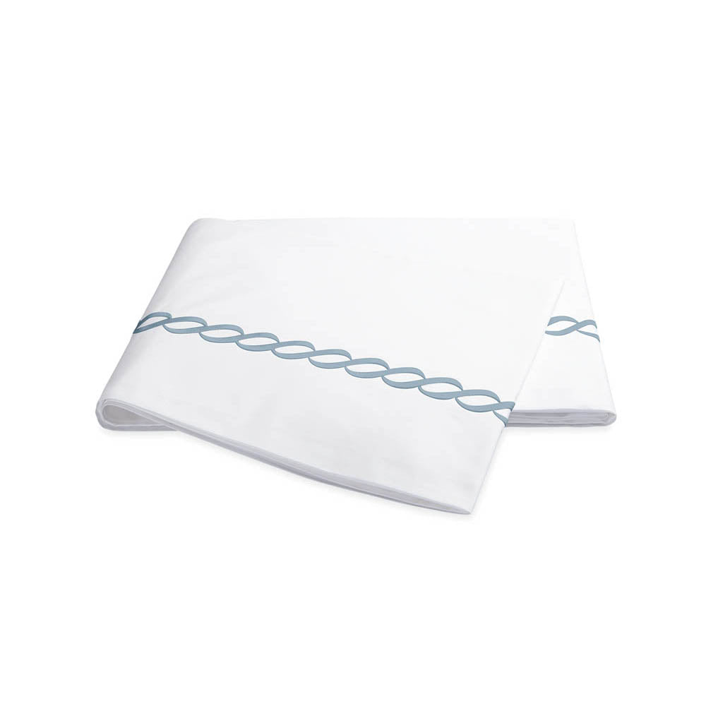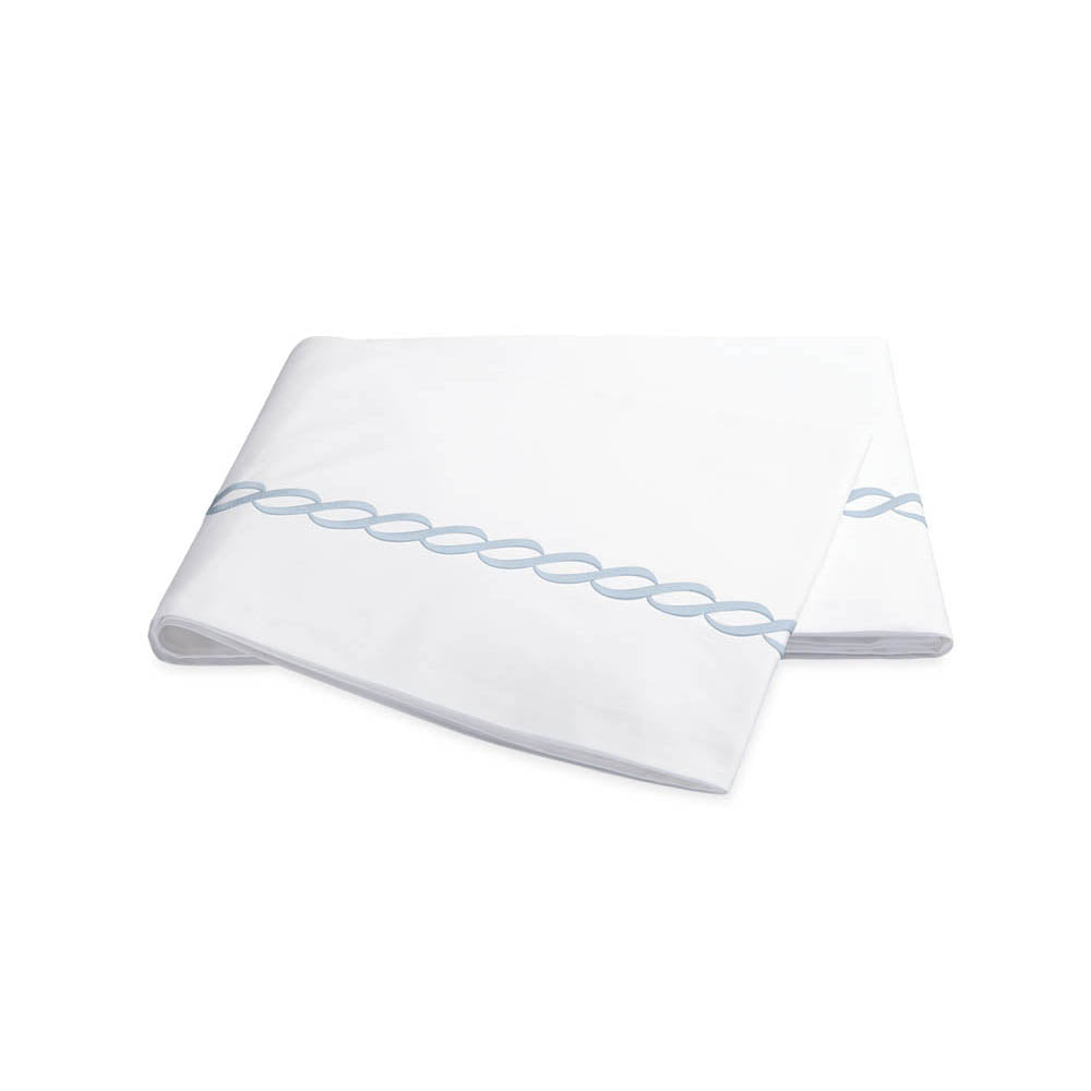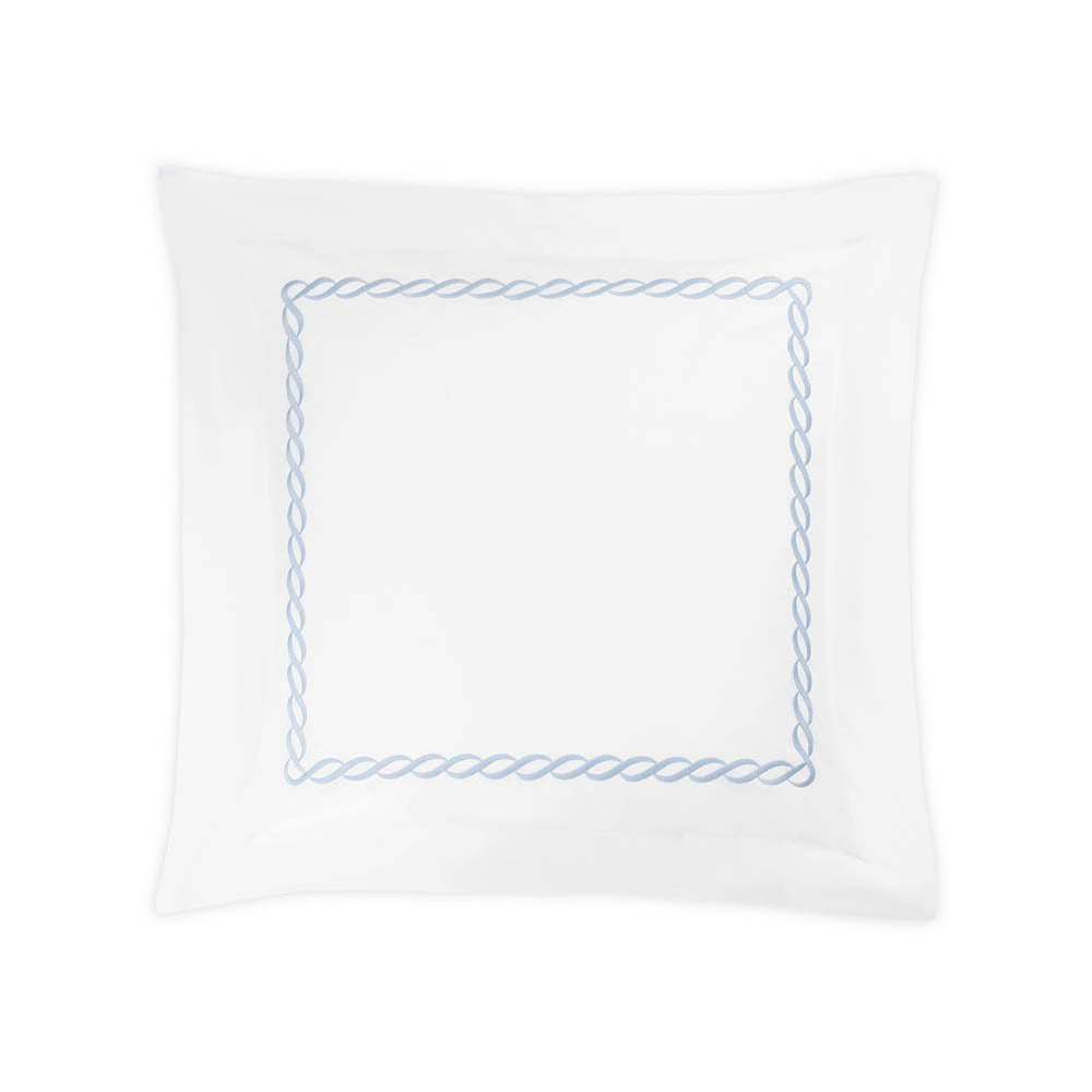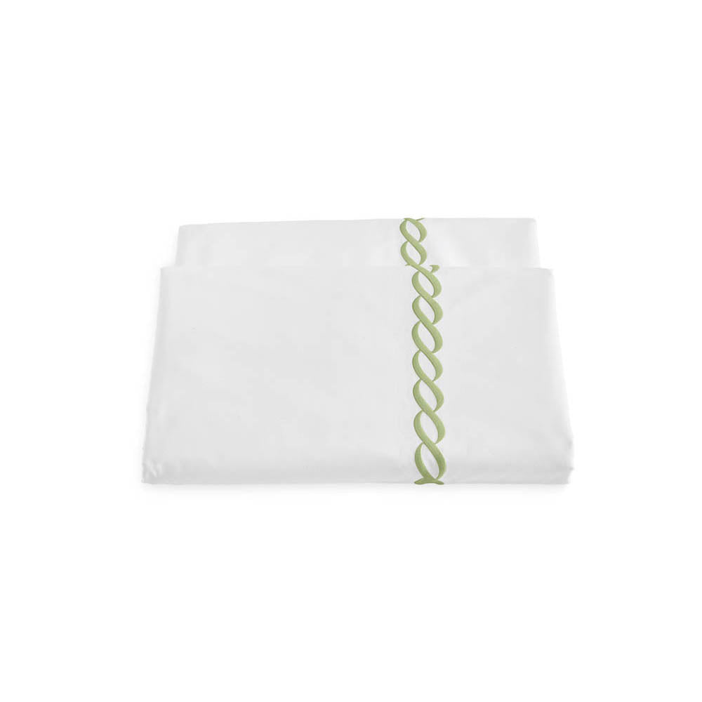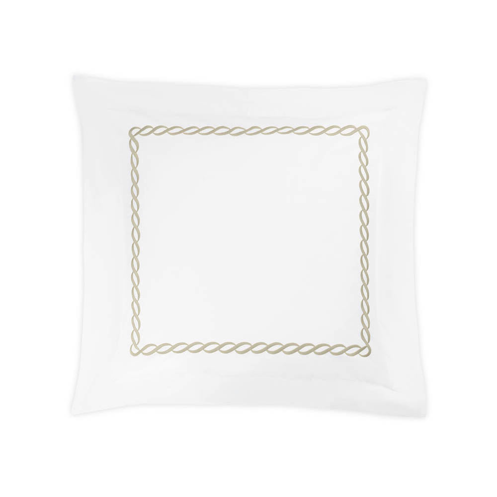 Inspired by a classical Greek motif, a fluid chain embroidery on our 350 thread count Sierra cotton percale creates an understated look for your bedroom.