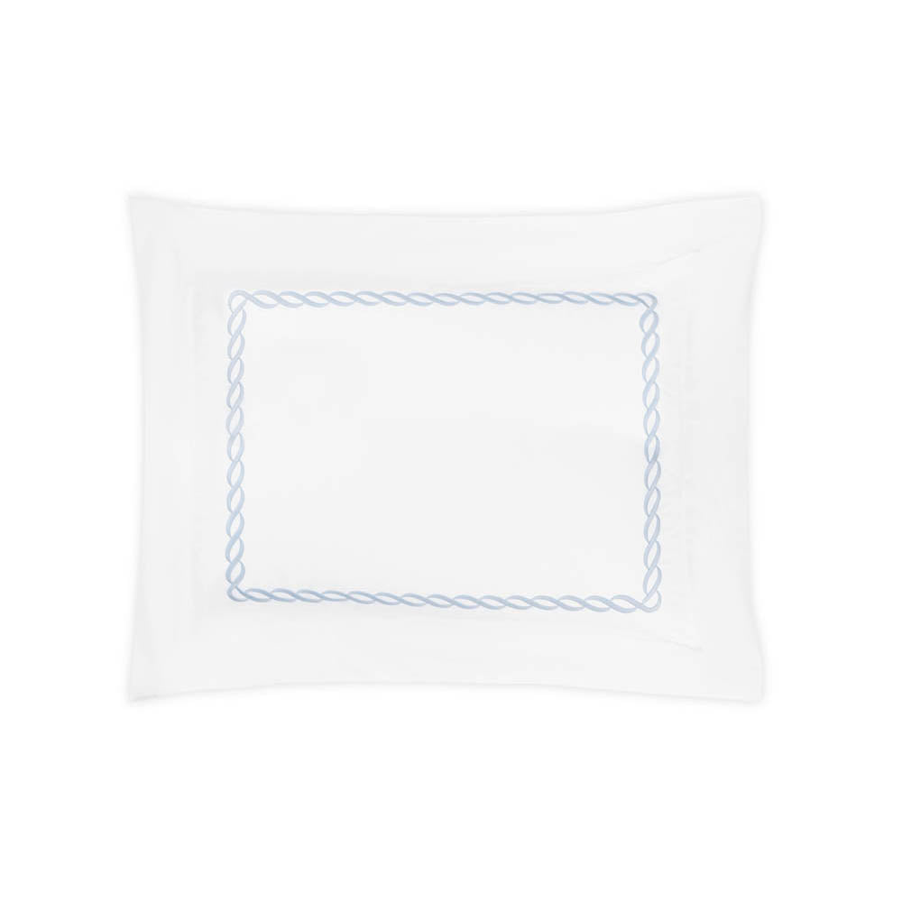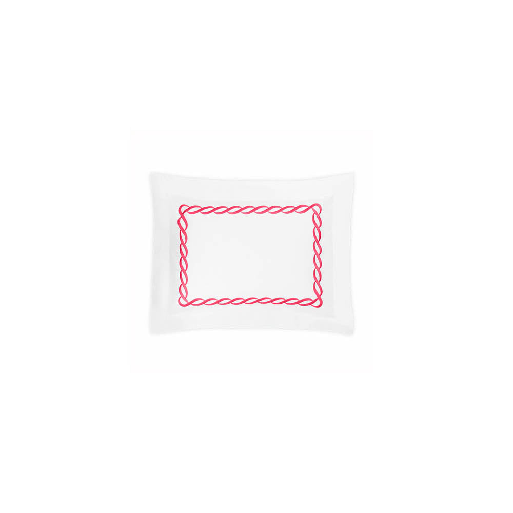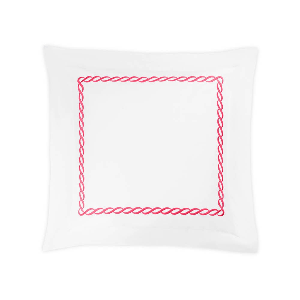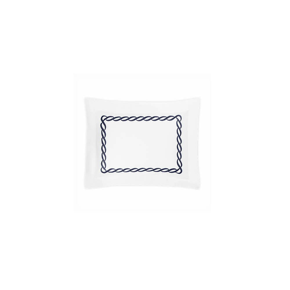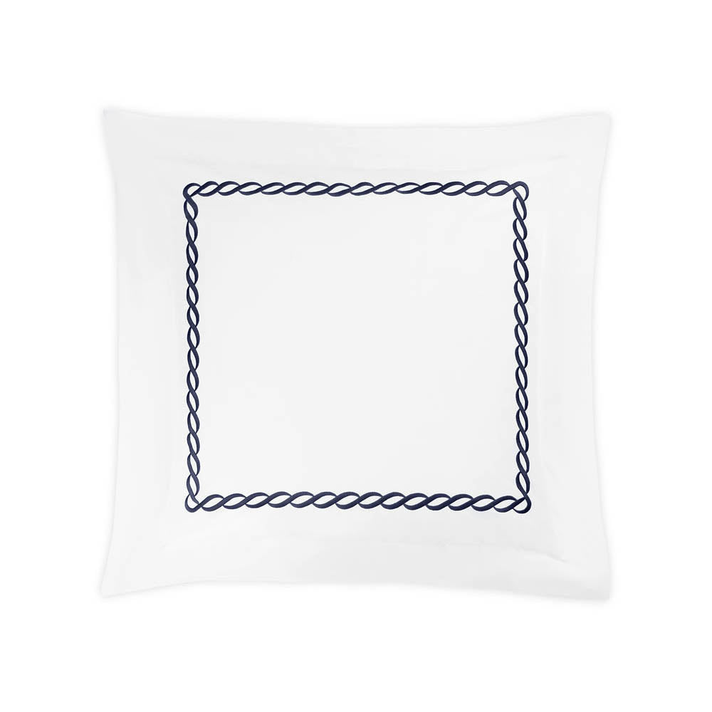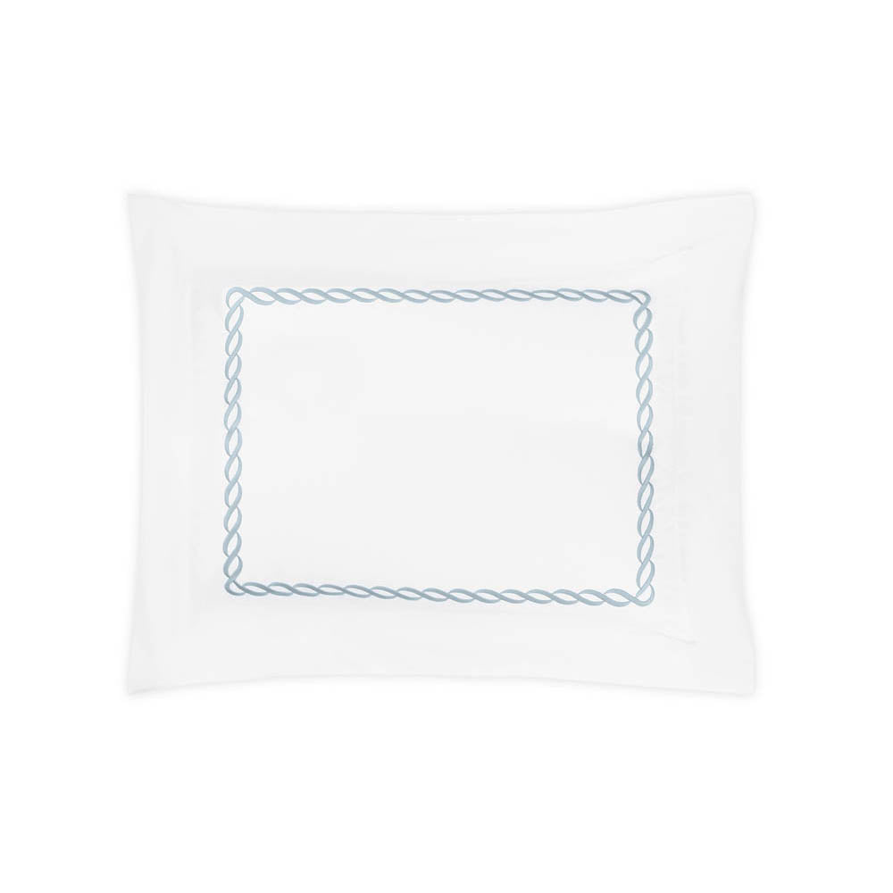 Inspired by a classical Greek motif, a fluid chain embroidery on our 350 thread count Sierra cotton percale creates an understated look for your bedroom.