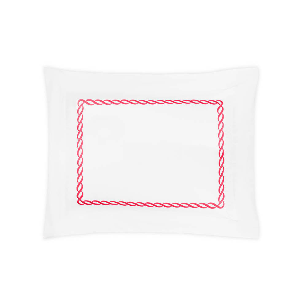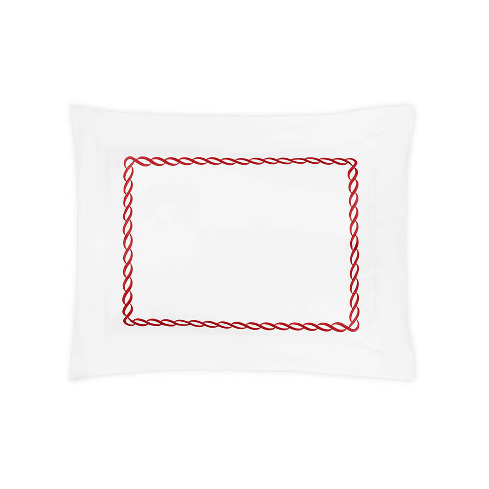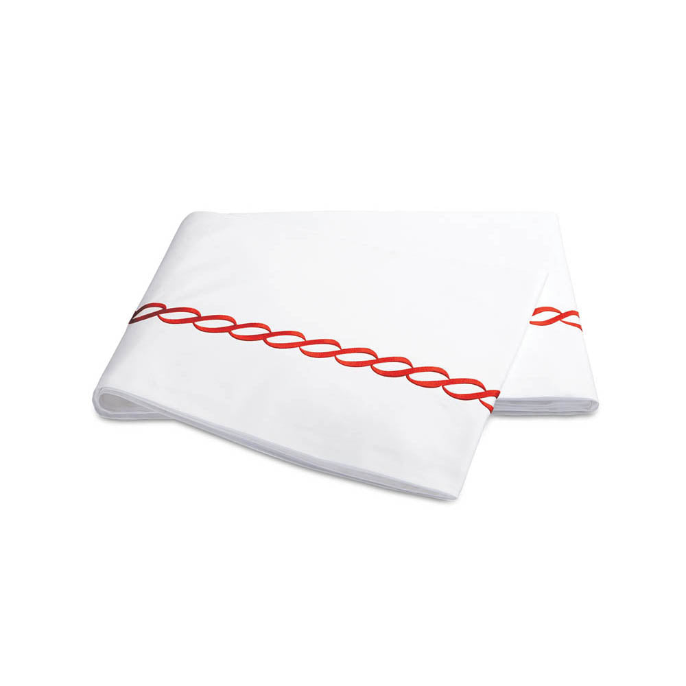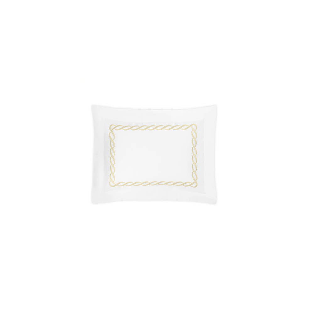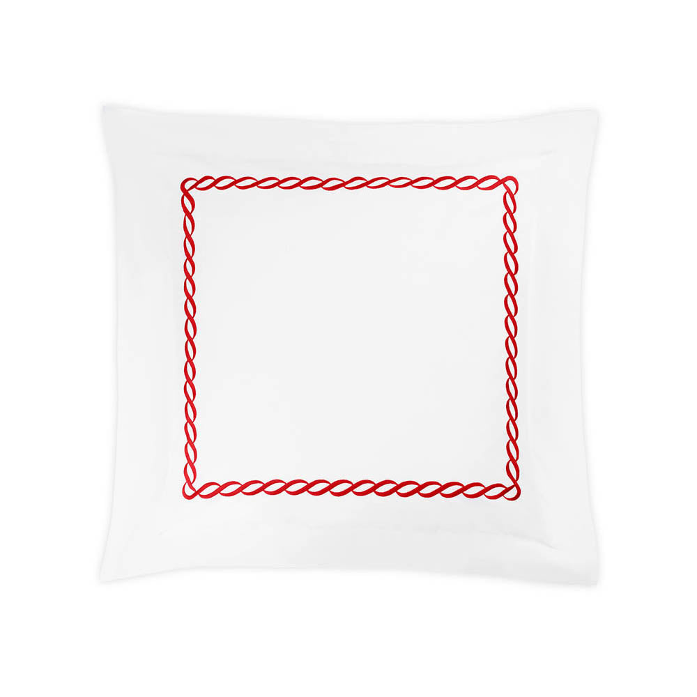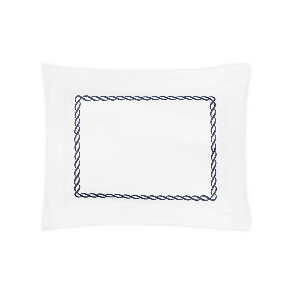 Inspired by a classical Greek motif, a fluid chain embroidery on our 350 thread count Sierra cotton percale creates an understated look for your bedroom.