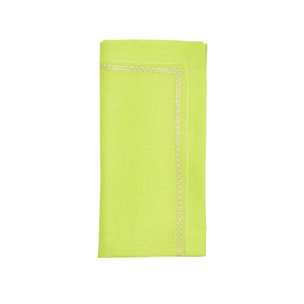 Elevate your table with our Classic Napkin collection. Available in a variety of colors, these 100% linen napkins are great for adding a pop of color while adding a touch of elegance. The Classic Napkin in green has a delicate border that features expertly embroidered silver stars.
