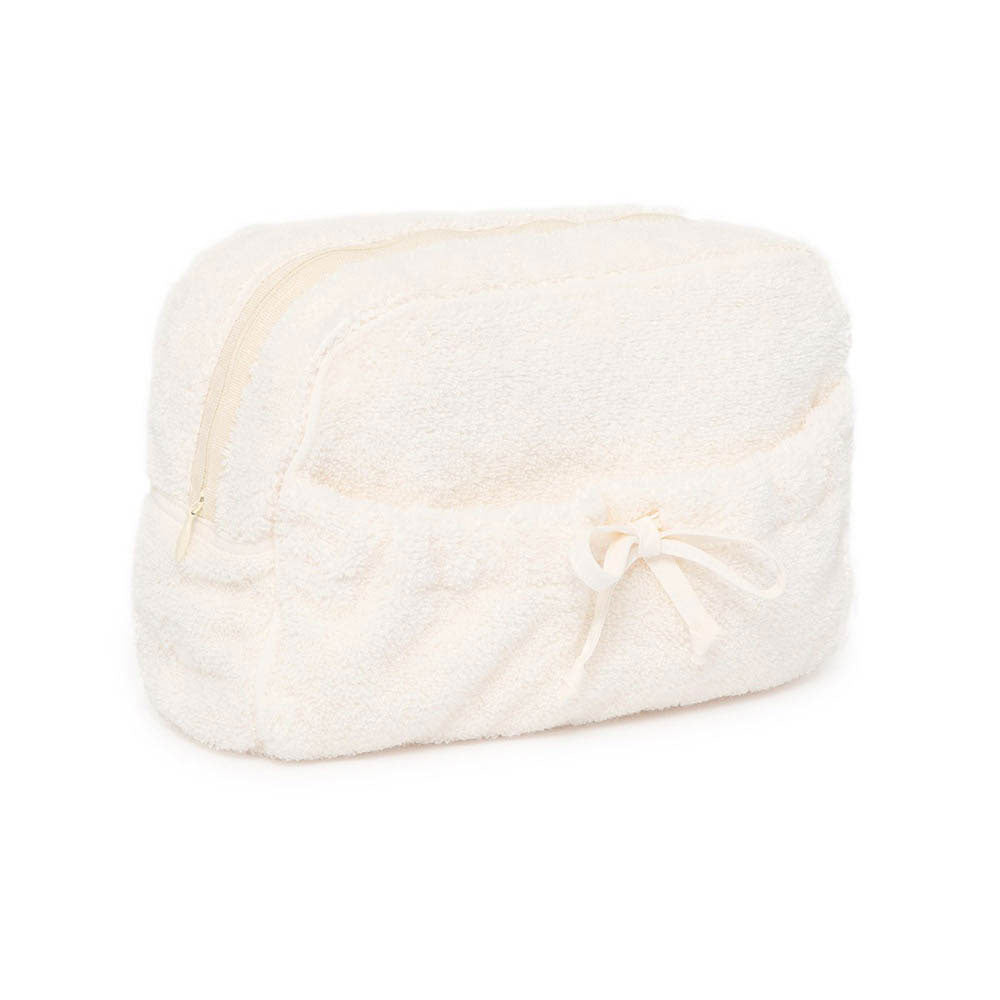 Etoile Women's Cosmetic Bags have an outside pocket with a ribbon and zipper closure.