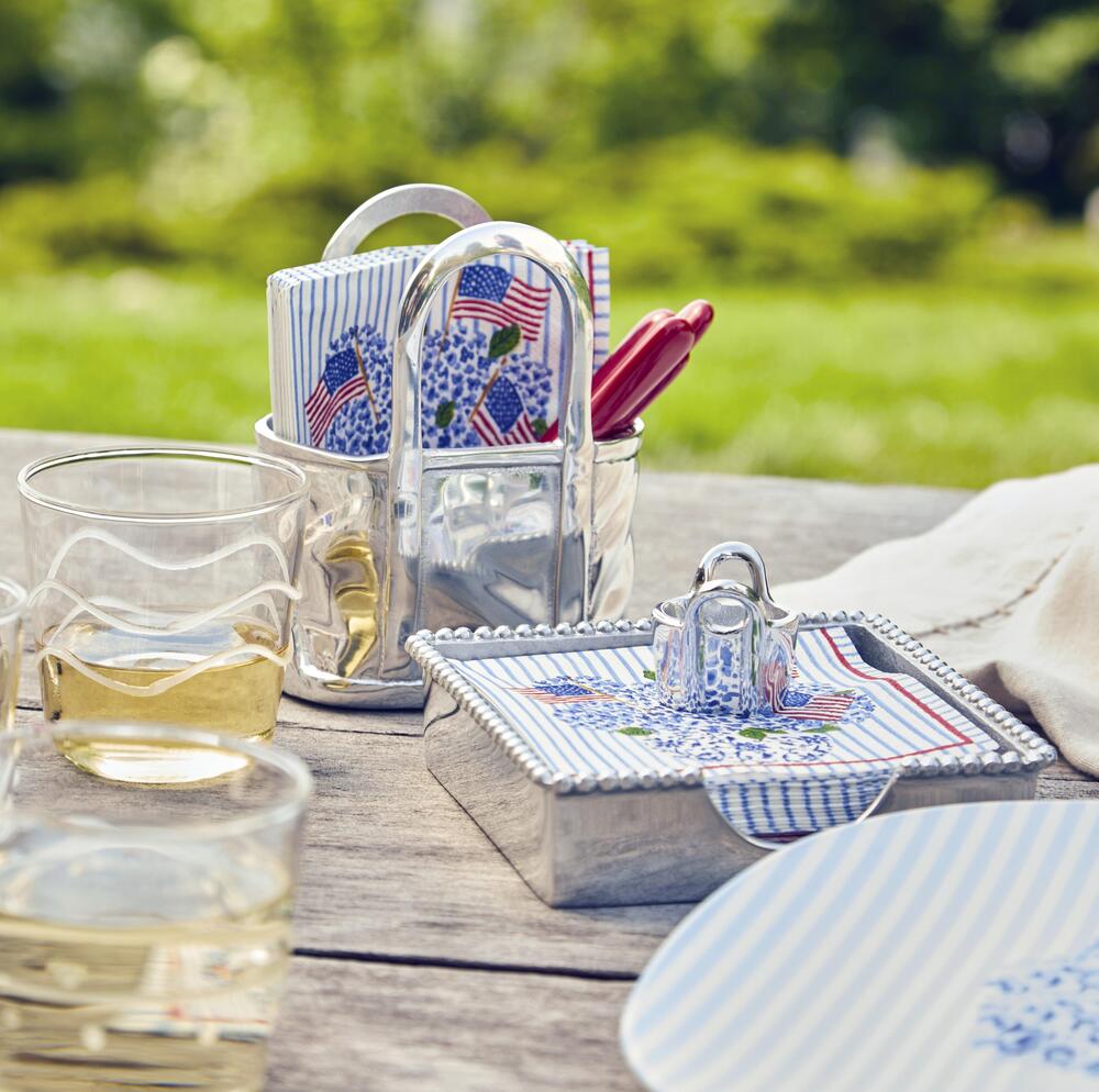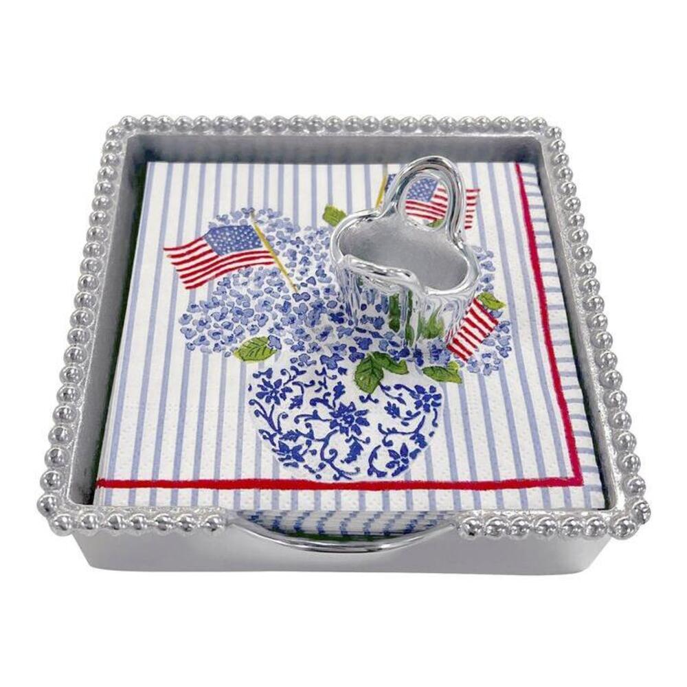 Flags and Hydrangeas Tote Beaded Napkin Box Set by Mariposa