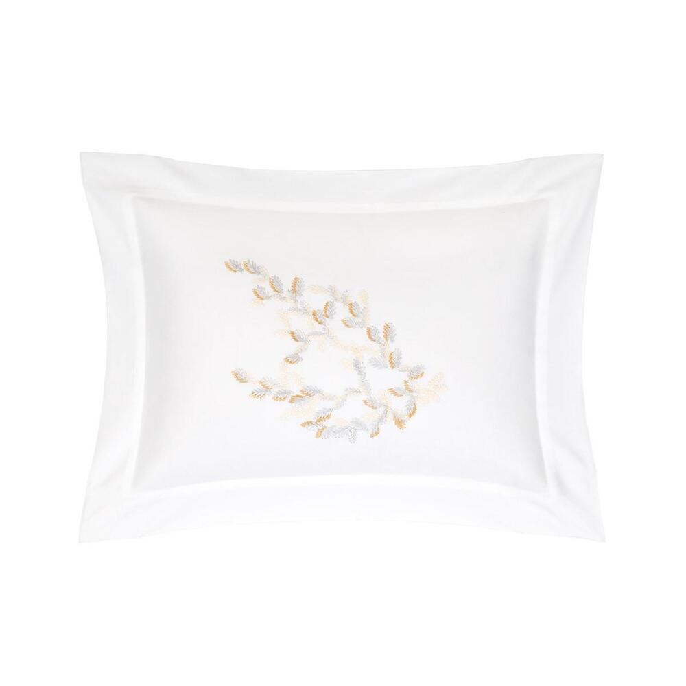 Gaia, goddess of the Earth in Greek mythology and personification of the Mother Earth of the ancients, inspires this embroidered design that plays with the magic of matte and metallic threads. The pattern traces delicate winter leaves, frosted by the thread, and creates a vibrant effect of light by relief. An elegant line that underlines the strong relationship between the Maison Yves Delorme and Mother Nature.