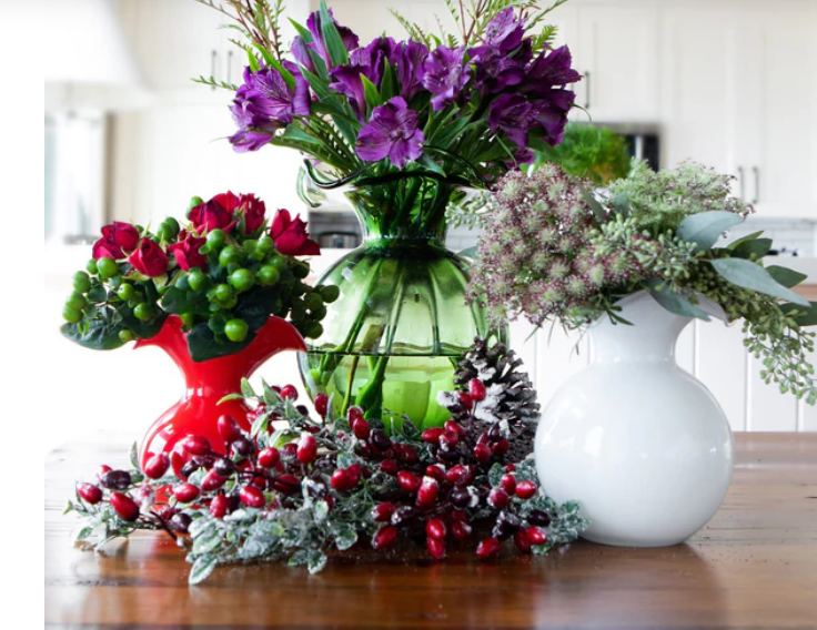 Skilled Tuscan artisans reimagine the beauty and delicate nature of the hibiscus flower in our mouthblown Hibiscus Glass. Curving, romantic, and fresh, the collection exudes easy elegance. The Hibiscus Glass Dark Green Medium Fluted Vase is a beautiful complement to any floral arrangement.