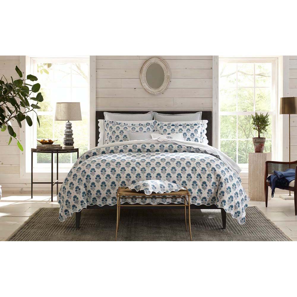 Lulu DK's oversized floral stem print on our 500 thread count Luca Egyptian cotton percale has a painterly feel and a playful energy. Finished with a touch of metallic color and our signature scallop taping, Joplin is a classic in the making. Whether coordinated with Butterfield or styled on its own, it's a gorgeous escape for your bed.