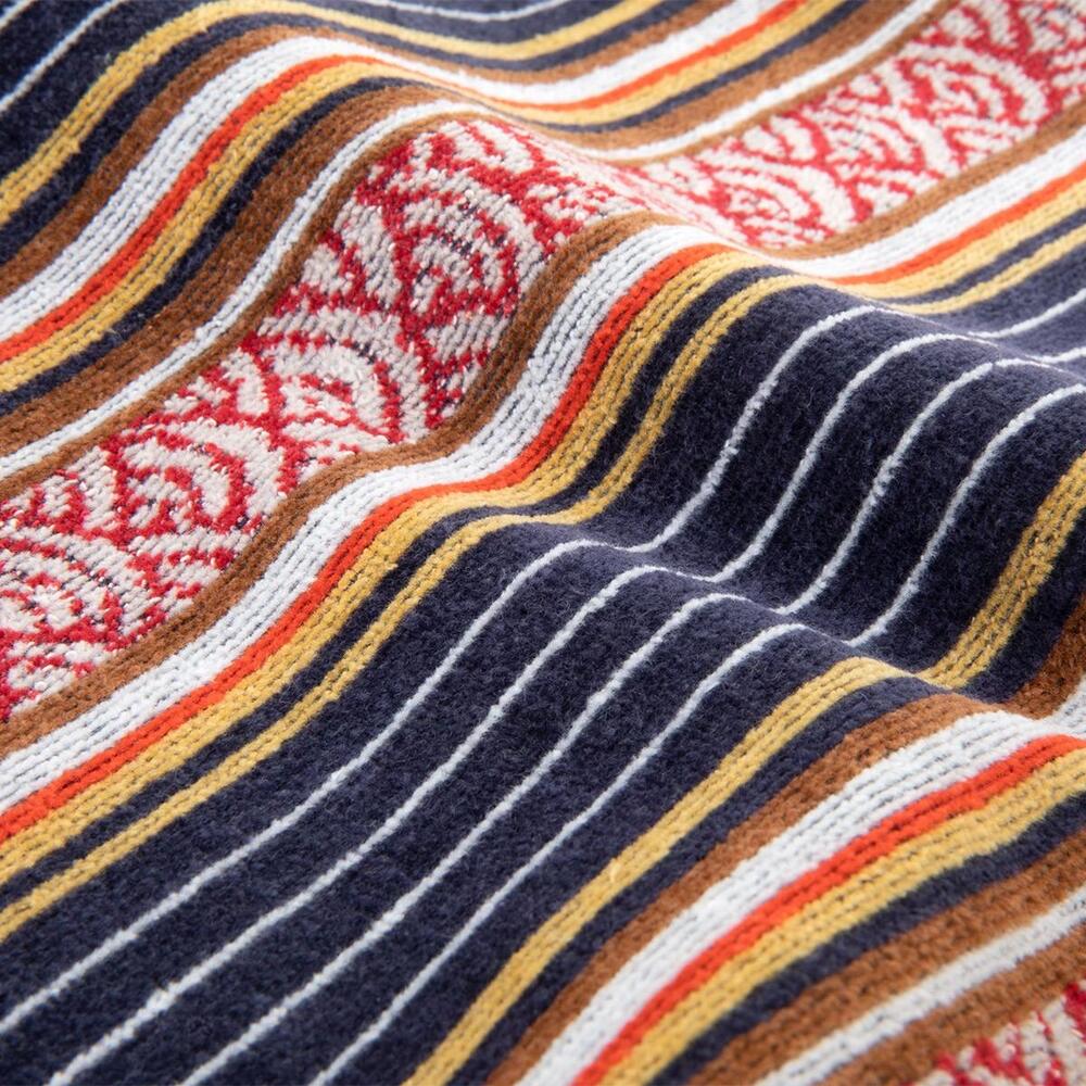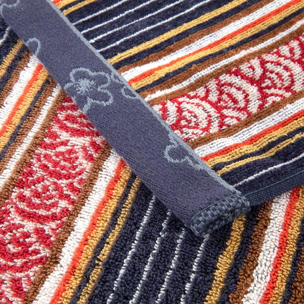 Kenzo's Shinzo collection reinterprets traditional Japanese motifs in the manner of an obi belt on a kimono. Two-tone stripes, simple flowers, and splashes of bright color create a refined, contemporary graphic mix, reminiscent of the patchwork aesthetic favored by the current artistic director at Kenzo. Made from 450g/m² organically grown cotton, K Shinzo towels are enveloping and soft.