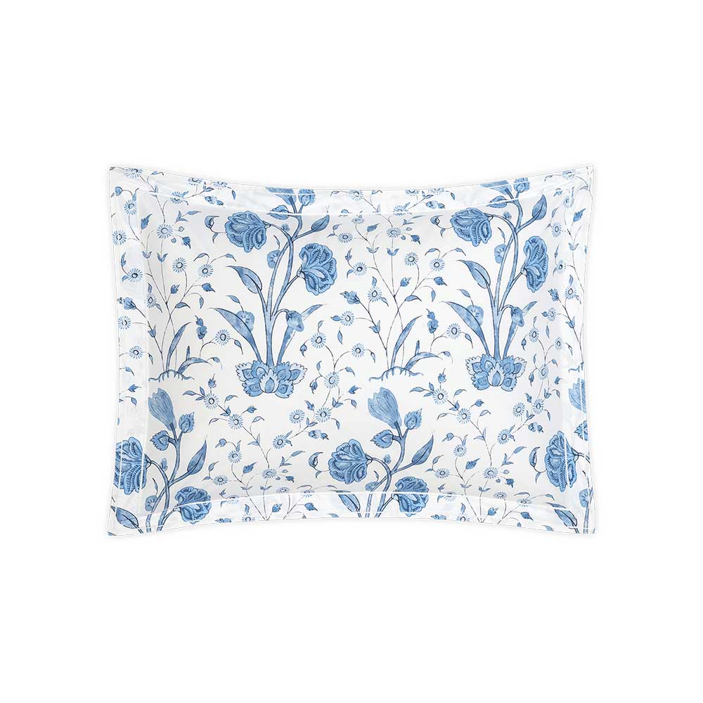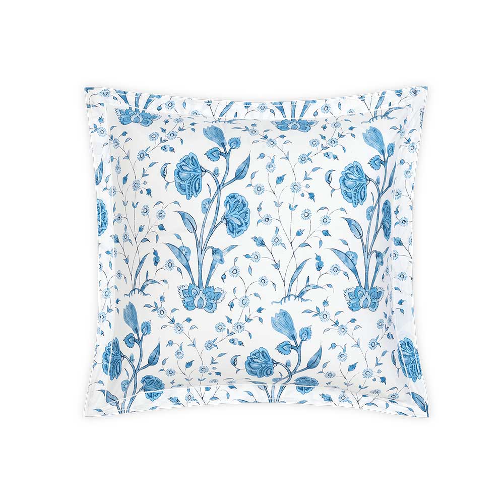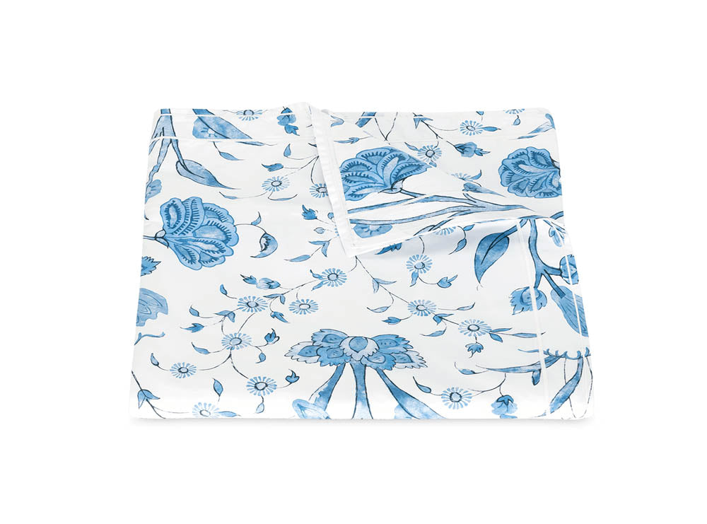Khilana, a delightful, large-scale floral inspired by traditional Indian hand-block textiles, is a divine addition to the Matouk Schumacher collection. It begins with our 500 thread count Luca Egyptian cotton percale, printed in Italy and is finished in our Massachusetts factory, where we craft a flange with a unique double satin stitch along the outer and inner edges.