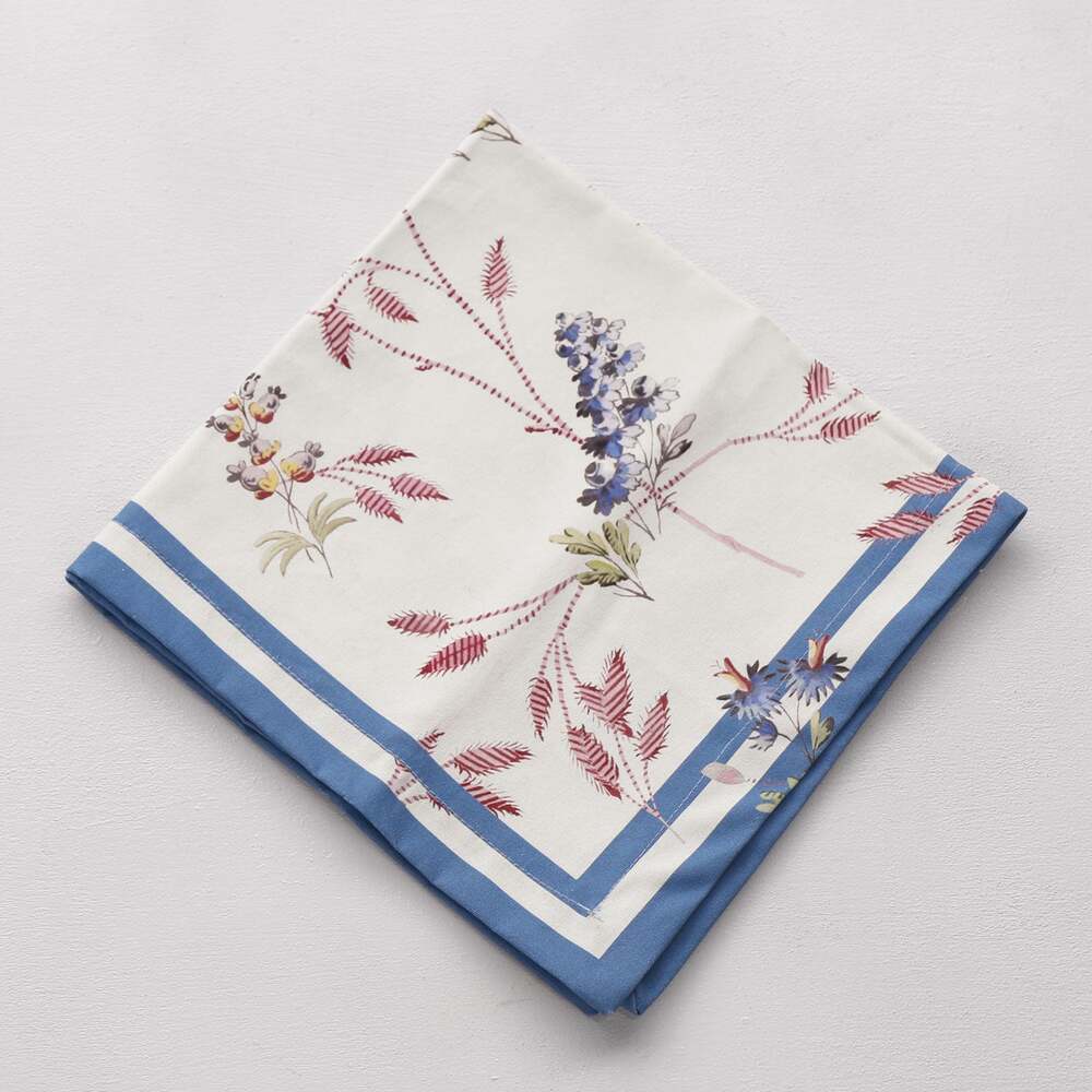 Our LINEN Sienna Napkins 20 x 20 Set of 4 (Multi) is part of this exclusive line of poly/cotton/linen runners and napkins. The easy-care pieces have lovely classic floral motifs combined with a fun contemporary double border in blue that introduces a unique modern flair that is both well timed and timeless. A welcome departure from the restraint of the grays and other neutral colors that have dominated the design world for many years. Sienna linens items come out of the washer and dryer looking absolutely perfect, not a wrinkle on them. Sold as a set of 4, the handsome LINEN Sienna Napkins 20 x 20 Set of 4 (Multi) have the soft and rich hand of fine linens, but are composed of an easy care blend. Great with our VIDA Sienna dinnerware! Machine washable and dryer friendly. An original design manufactured exclusively for Beatriz Ball.