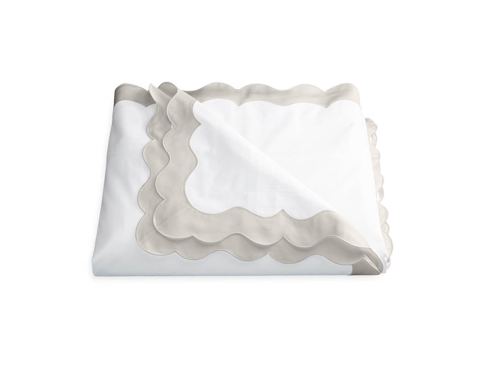 A unique and feminine applique scallop gives this style a wonderful artisanal look and a one-of-a-kind feel. Cast on our 600 thread count Milano Egyptian cotton percale base with sateen detail, the effect is modern femininity at its best.