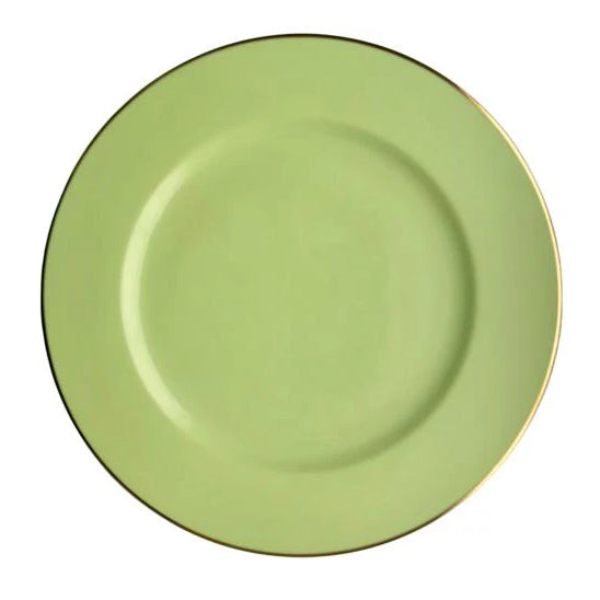 Mint Green colored charger plate with gold border designed by Anna Weatherly.