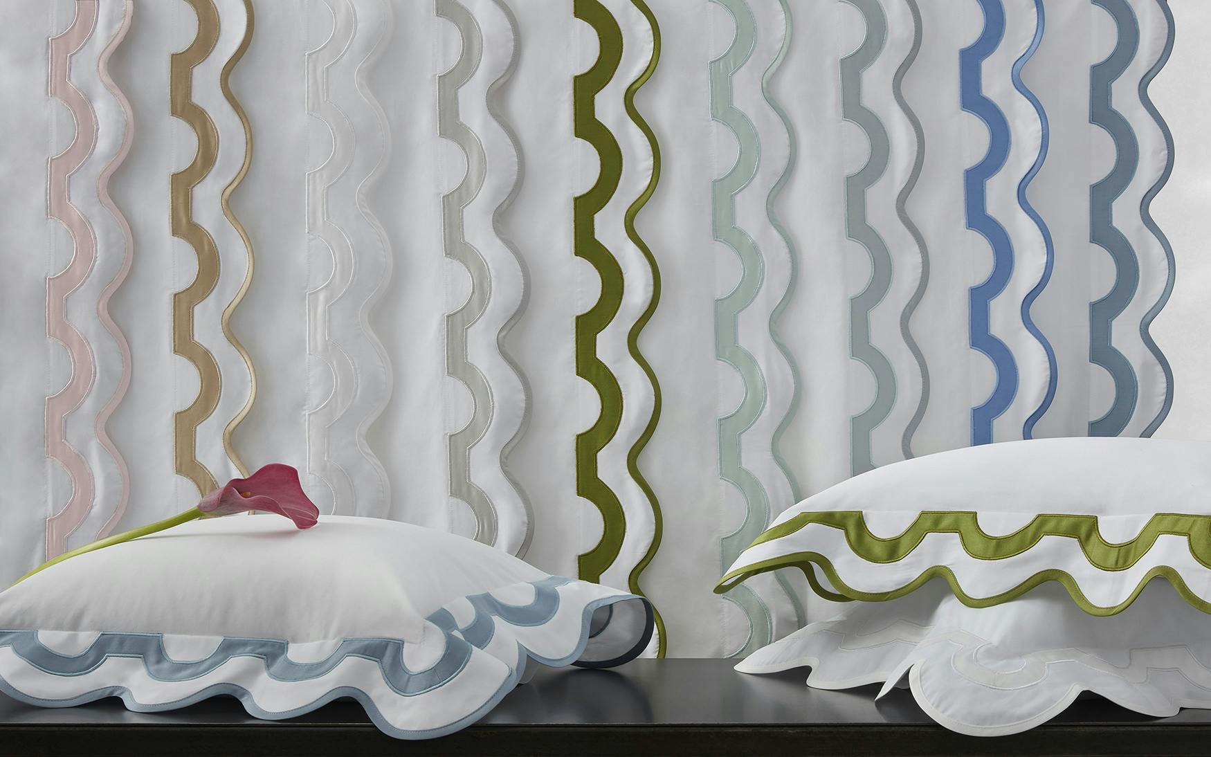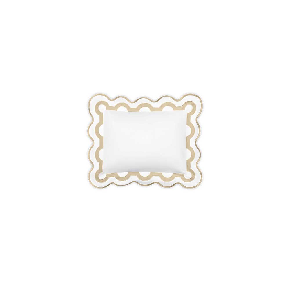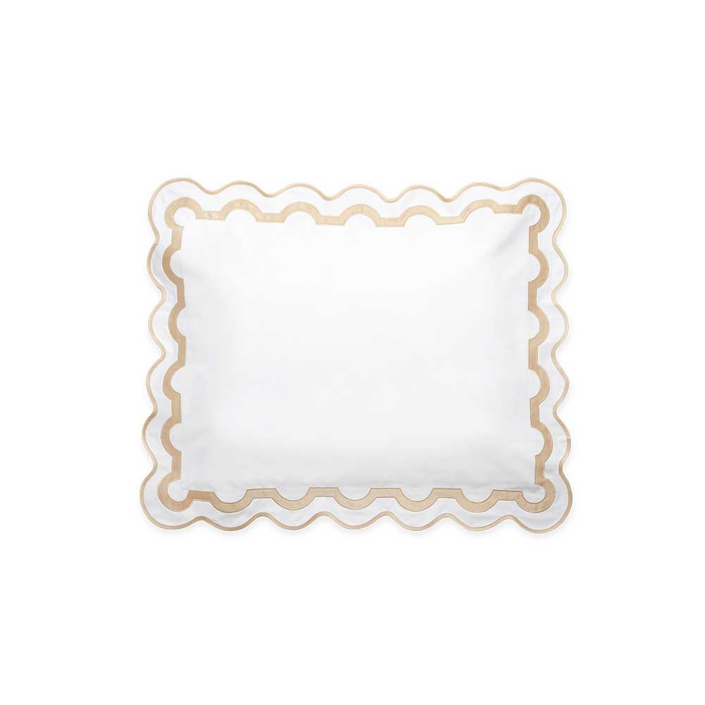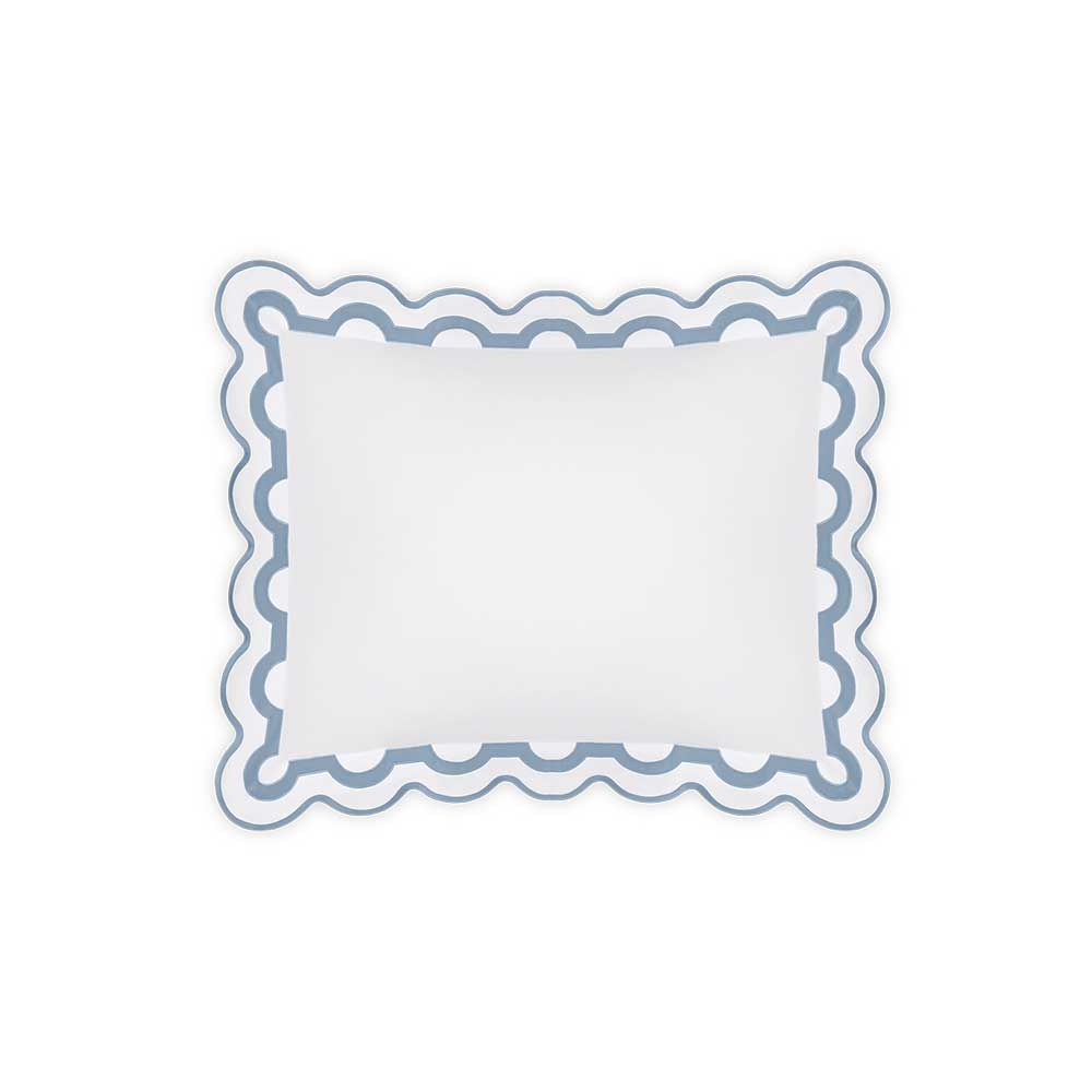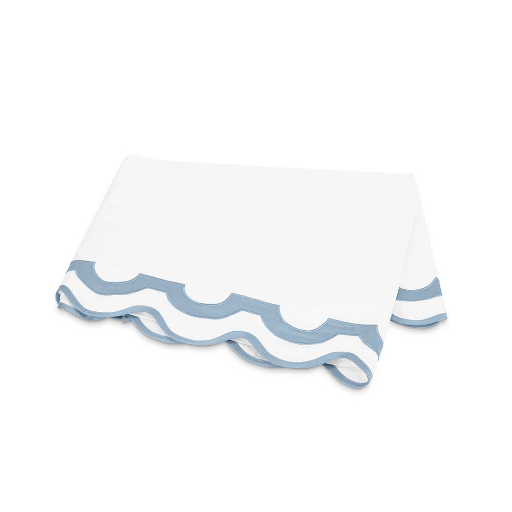 Inspired by a stroll down Worth Avenue in Palm Beach, the unique arch trim of shop awnings becomes a tasteful complement to our soft and luxurious 600 thread count Milano Egyptian cotton percale bedding, made in Italy.