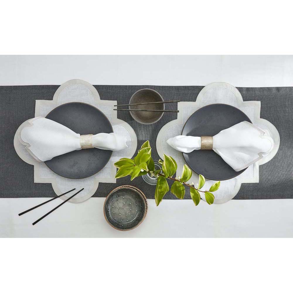 Inspired by a stroll down Worth Avenue in Palm Beach, the unique arch trim of shop awnings becomes a tasteful complement to exquisite table linen.