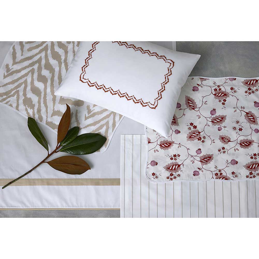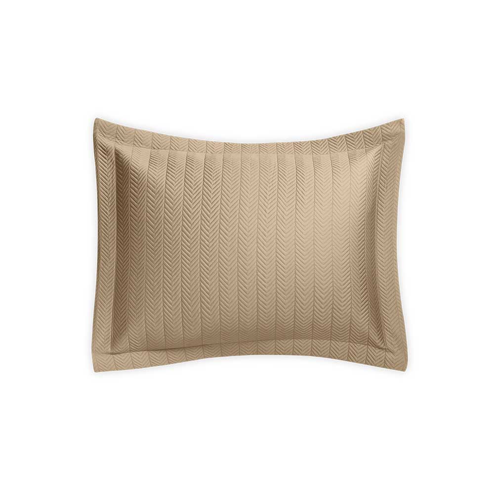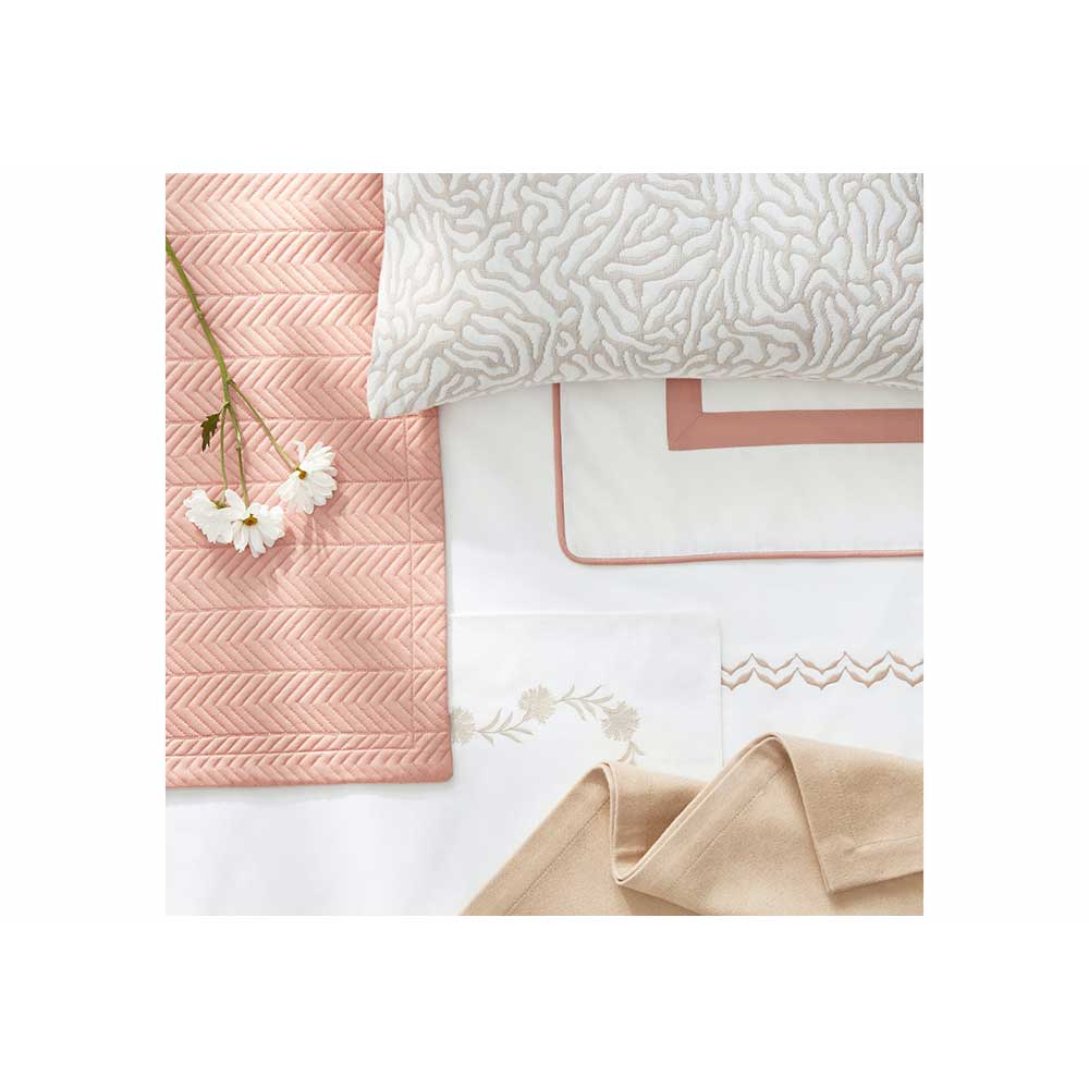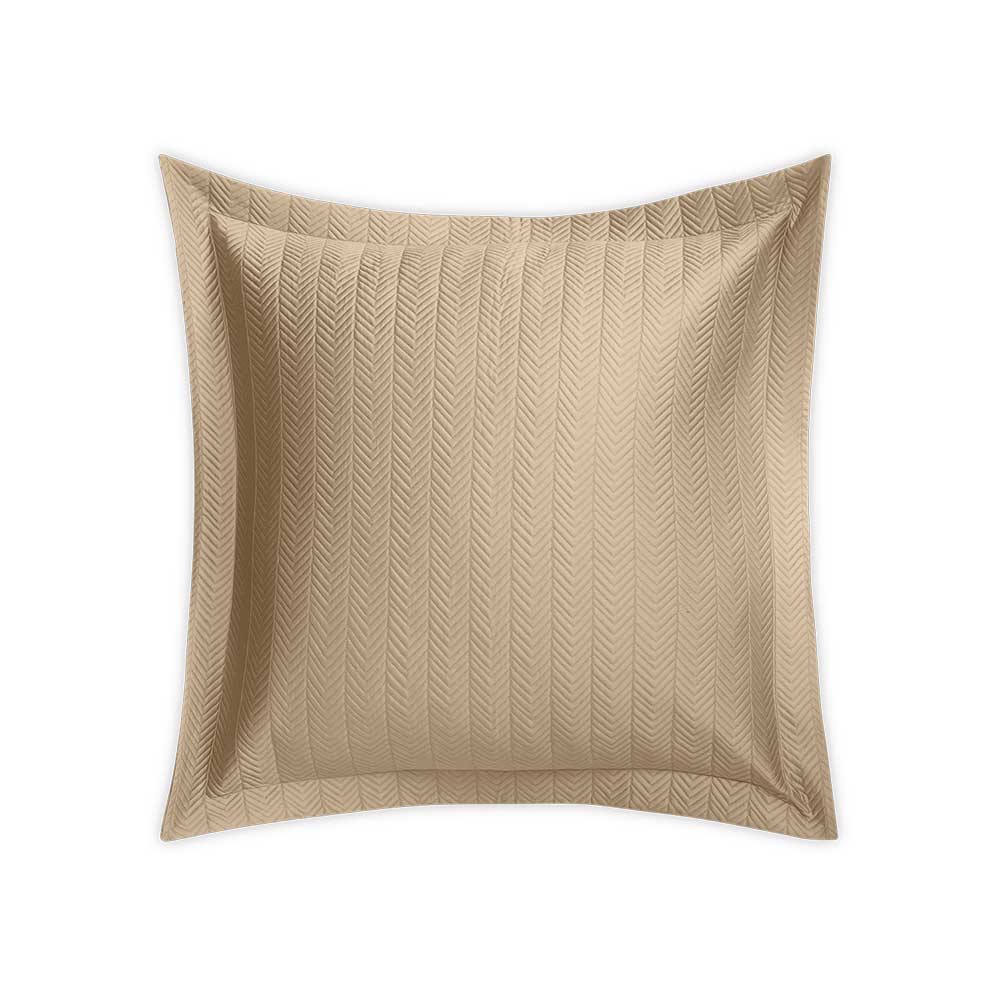 Netto puts a new twist on a traditional quilt pattern, creating an array of paneled chevron rows. To give it a light, lofty weight and silky-smooth touch, it's crafted from Talita, our 615 thread count Giza Egyptian cotton sateen. Netto is a perfect complement to our Talita Satin Stitch collection.