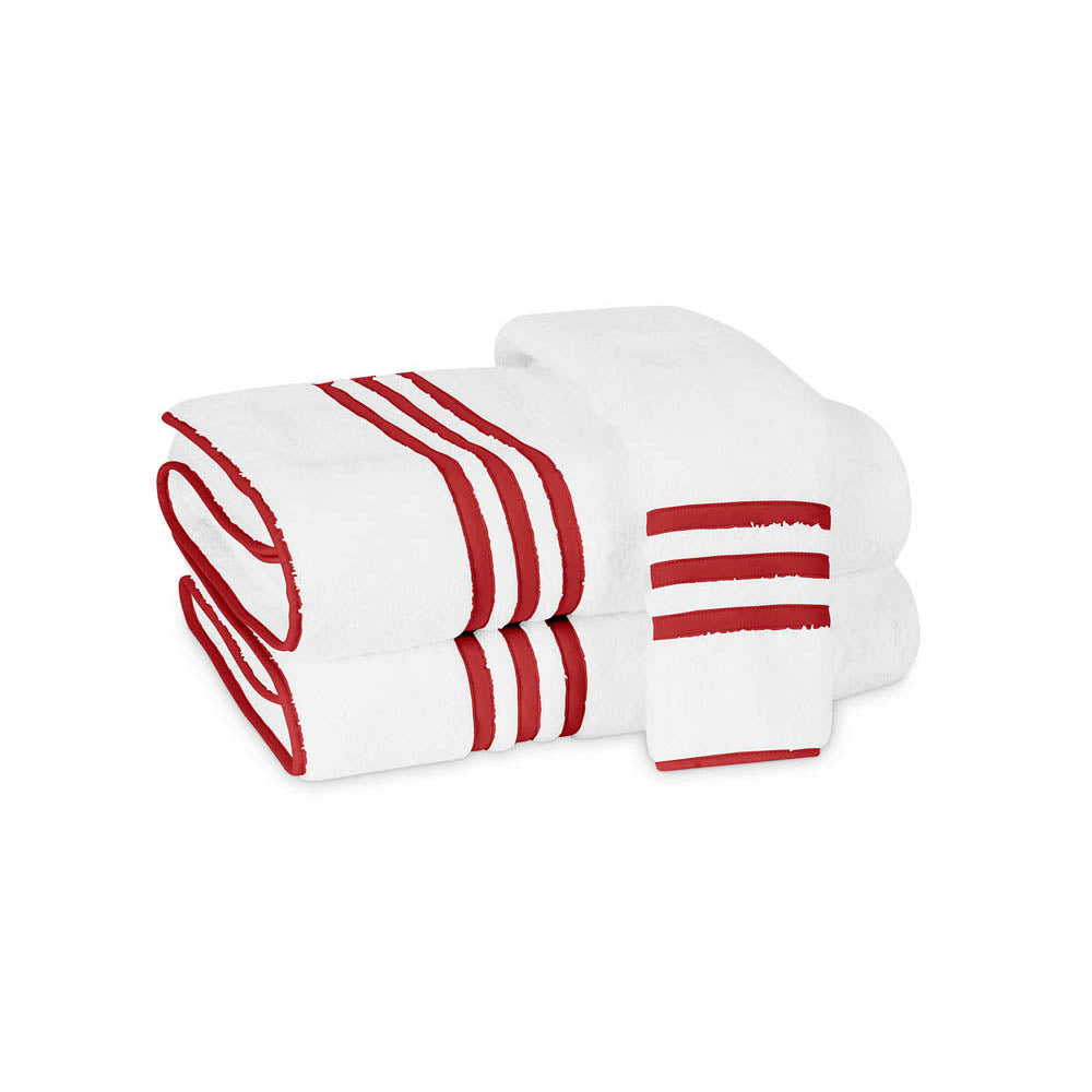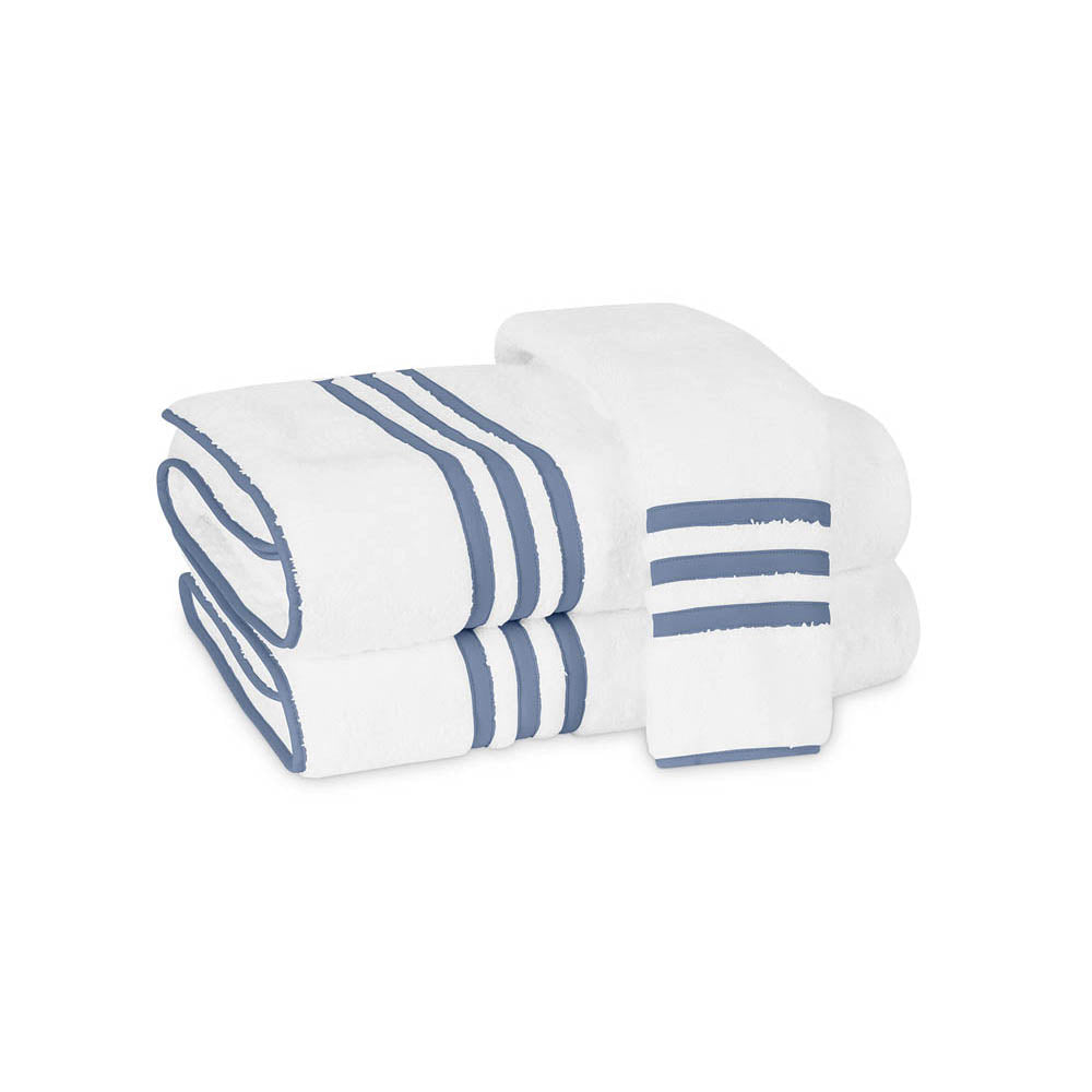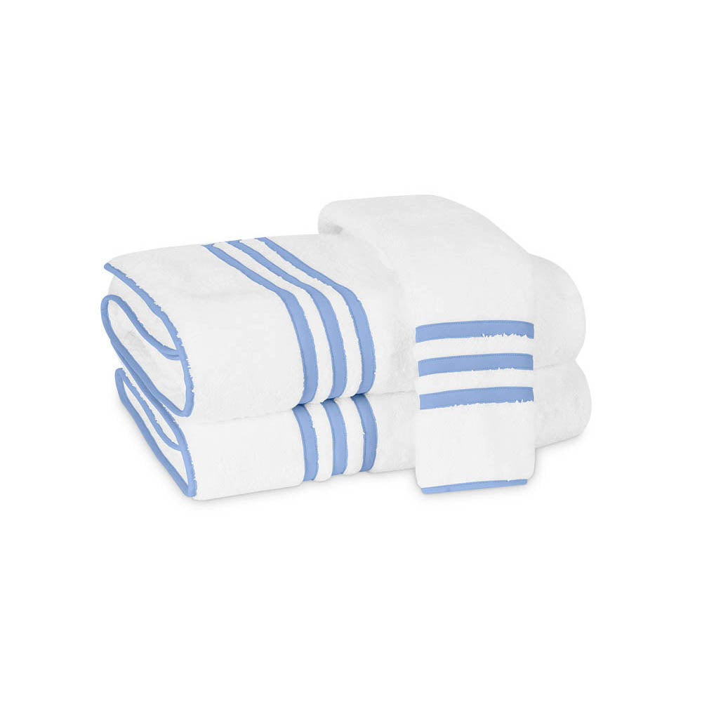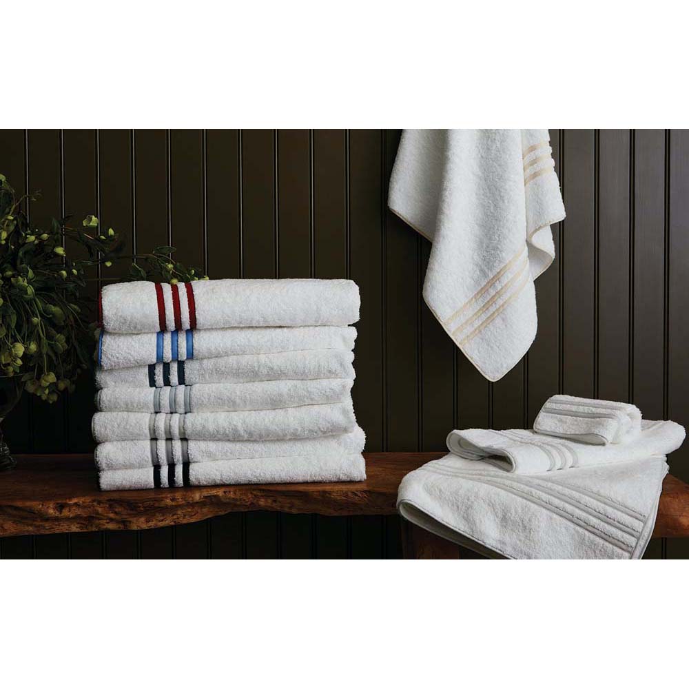 A triple appliqué-tape border on long-staple Cairo cotton terry gives Newport its classic elegance and incomparable quality. Choose from eight beautiful tape colors to breathe new life into your bath.