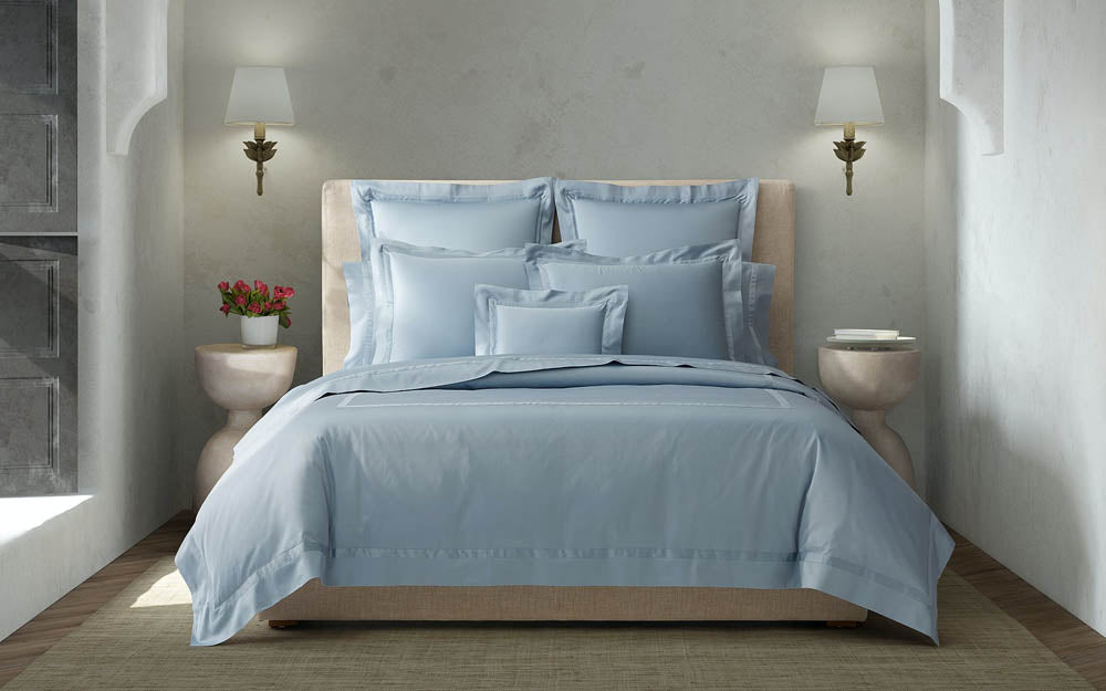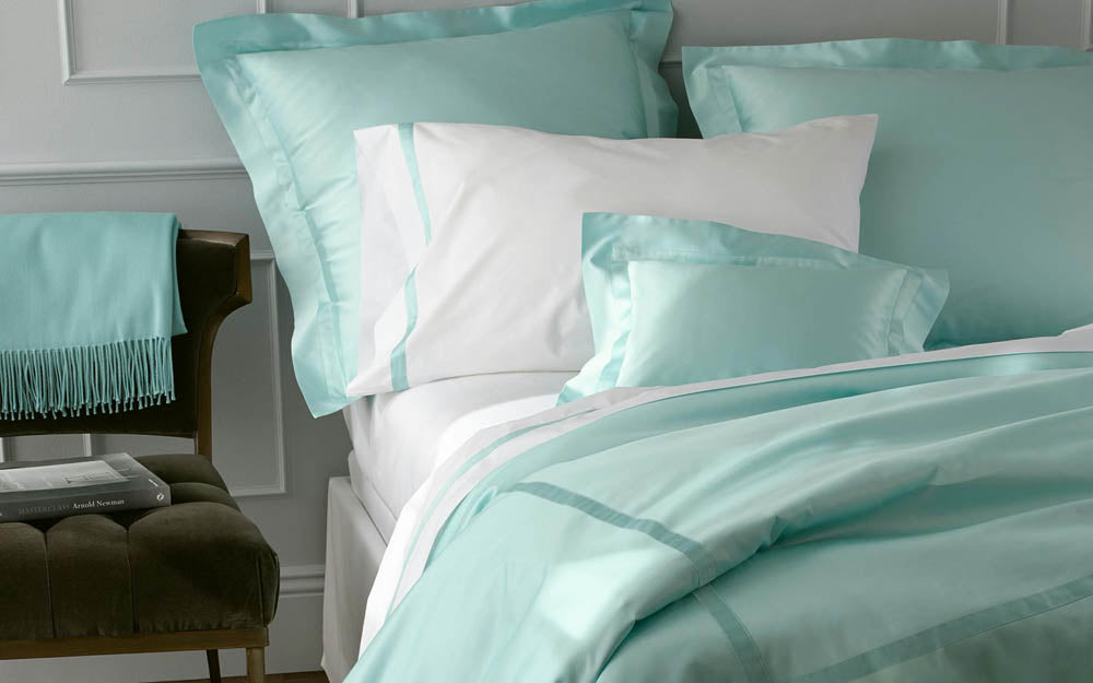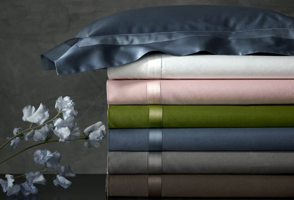 Exuding unrivaled charisma, our luminous sateen made of 600 thread count Egyptian cotton from Italy is a classic look in a collection of opulent colors, and is finished with a 1-inch self-toned tape detail.