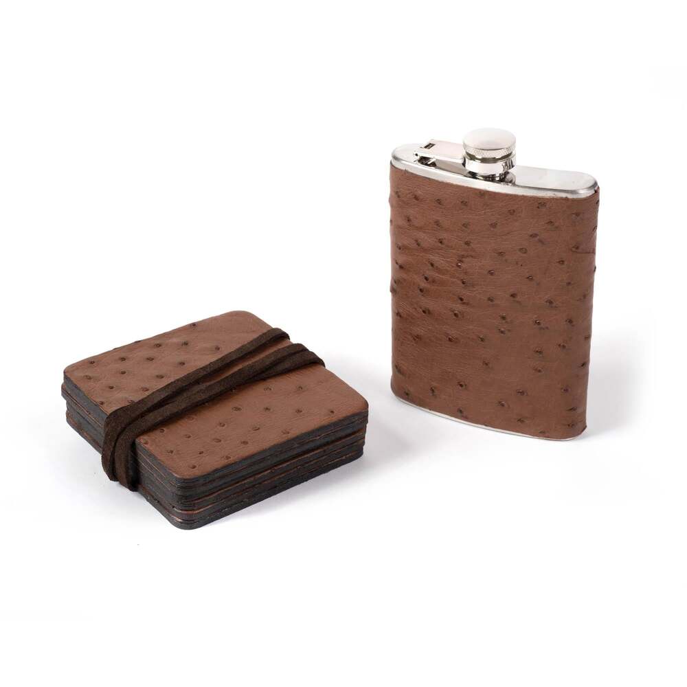 Ostrich Leather Coasters with Tie Set of 6 by Ngala Trading Company