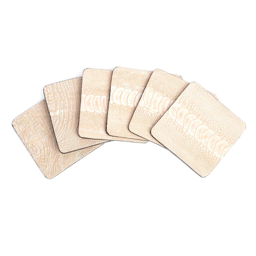Ostrich Shin Coasters with Tie Set of 6 by Ngala Trading Company