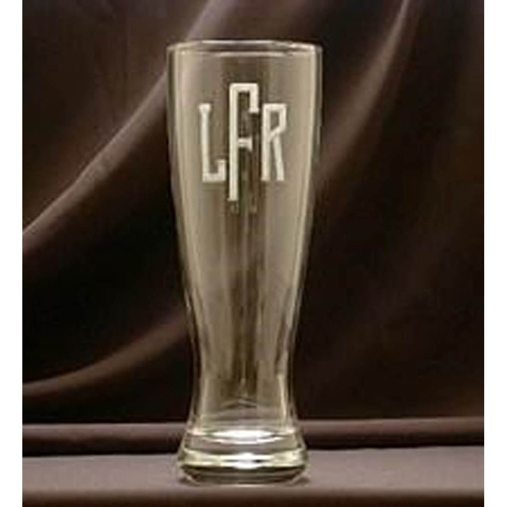 Oversized Grande Set of Four Pilsner Glasses. A wonderful addition to your bar!Large in scale with your monogram, they will personalize your barware collection.