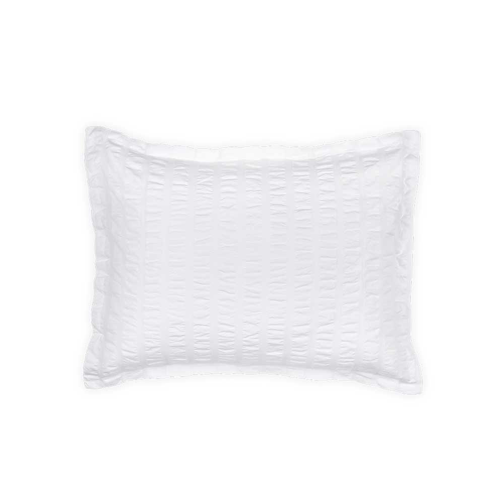Rows of oversize cotton seersucker and basketweave from Portugal give this duvet and shams a modern update on a classic look. Pair it with a colorful pattern or layer it on an all-white bed for added texture and subtle pattern.