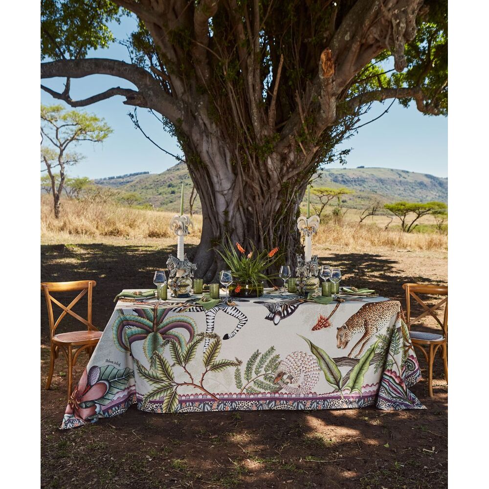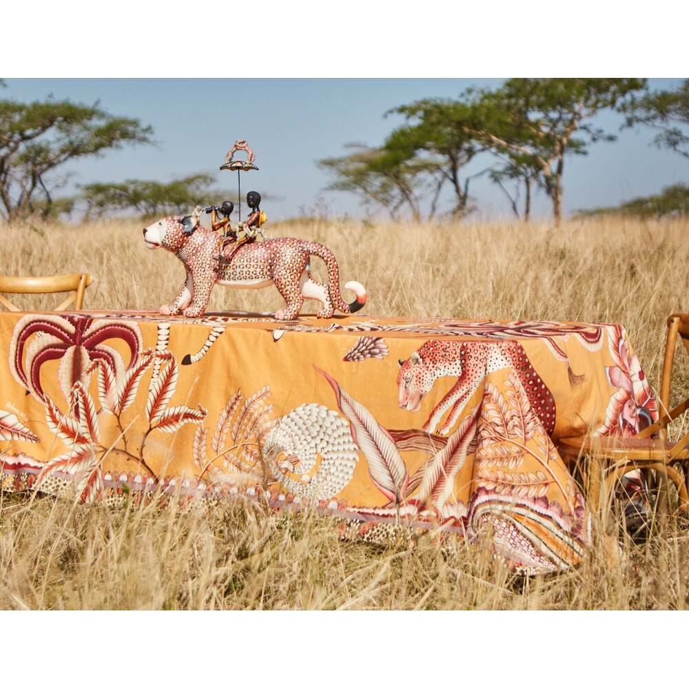 Pangolin Park Tablecloth in Flame is a palette that calls to mind the shimmering heat of an African day, and the fiery mystery of exotic spices. The Thanda Collection beautifully embodies the love story of Ardmore founder Fée Halsted Berning’s son Jonathan and his wife, Kate, referencing many of the events of their much-anticipated wedding at Thanda Game Lodge.
