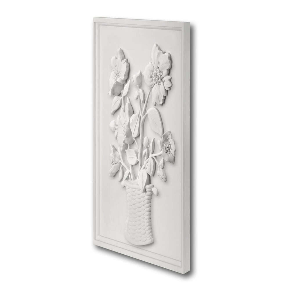 A woven cachepot holding an effervescent group of poppies is the focus of this 18" x 18" relief plaster panel, cast in New York, and perfectly scaled to be used alone or as part of wall group with our other plaster panels.