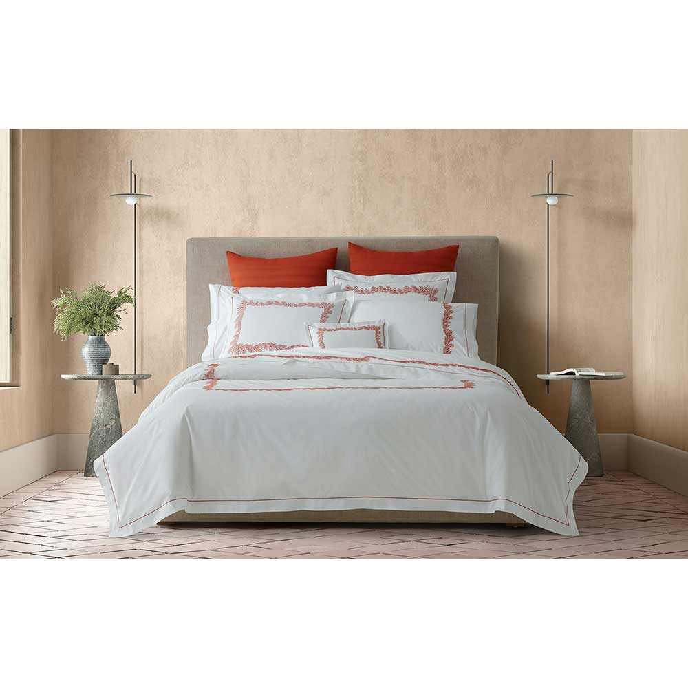Our classic, timeless print by artist and designer Lulu DK. Inspired by hydrangeas in full bloom, Poppy’s cheerful pattern is woven and printed in Italy on our 500 thread count Luca Egyptian cotton percale and finished with our signature scallop edges.