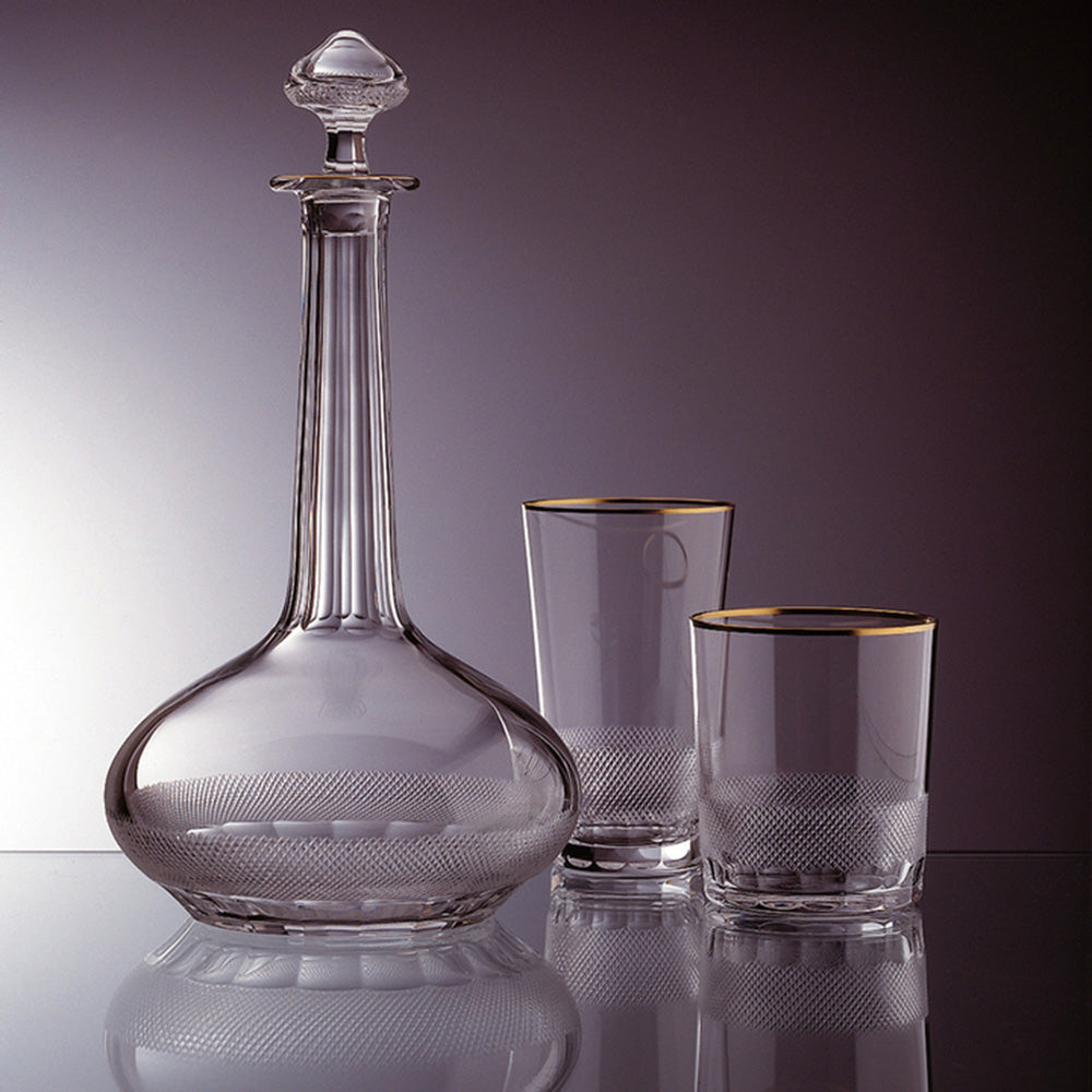 The restrained style that Moser gave to its Royal collection, corresponds with the Edwardian aesthetics of the time, which was gaining popularity in the early 20th century at the expense of ornate Art Nouveau style. The classic shape with clean silhouette and smooth walls allows the unique optical properties of Moser crystal to shine. The transition of the walls into the hand-cut six-faceted stem bears a delicate diamond cut, whose proportions create the notional centre of gravity of all the glasses. The upper edge of the goblets is decorated with a slight strip of a 24-carat gold. Thanks to the hand manufacture, the Royal collection can be personalized per the customer€™s wishes and supplied in one of the traditional Moser colours (aquamarine, alexandrite, beryl, eldor, rosaline or topaz).
