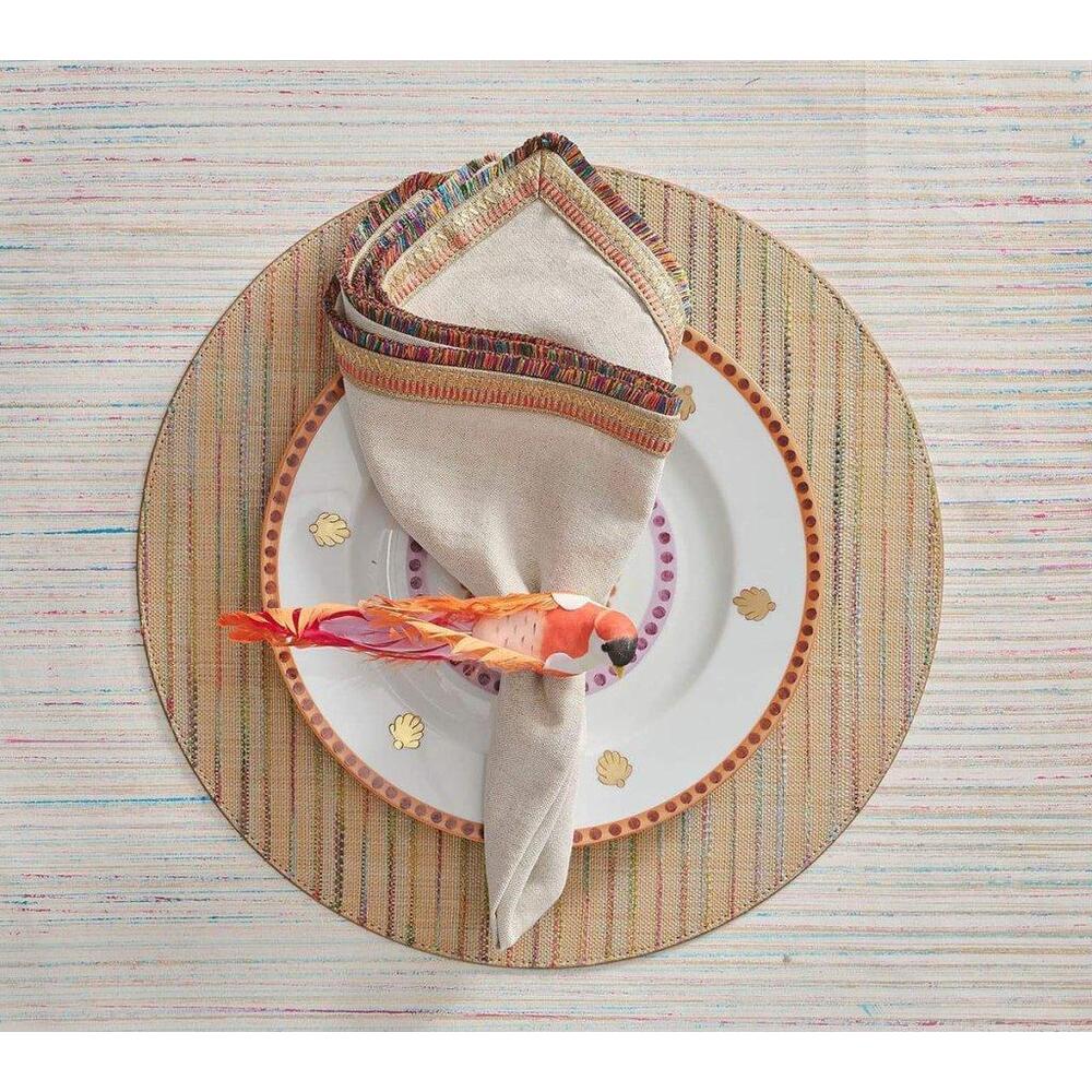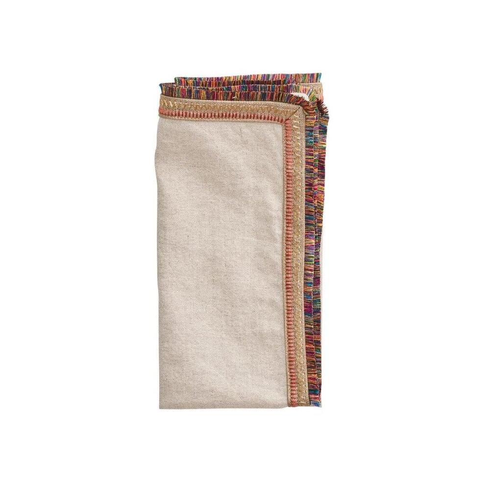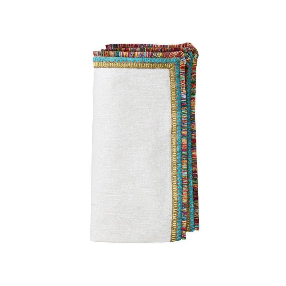 Much like their name, these napkins offer every color imaginable. Their borders are embroidered with multi-hued threads that call to mind everything from African themes to Peruvian motifs. Perfect for wanderlust-themed parties.