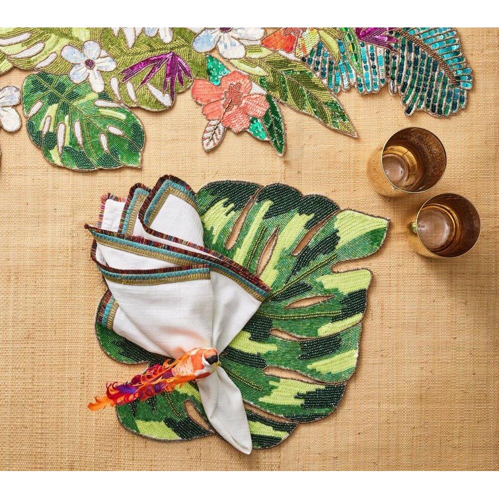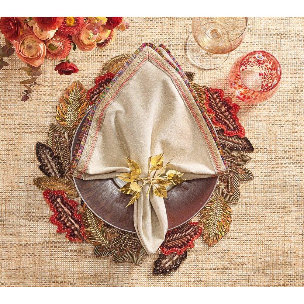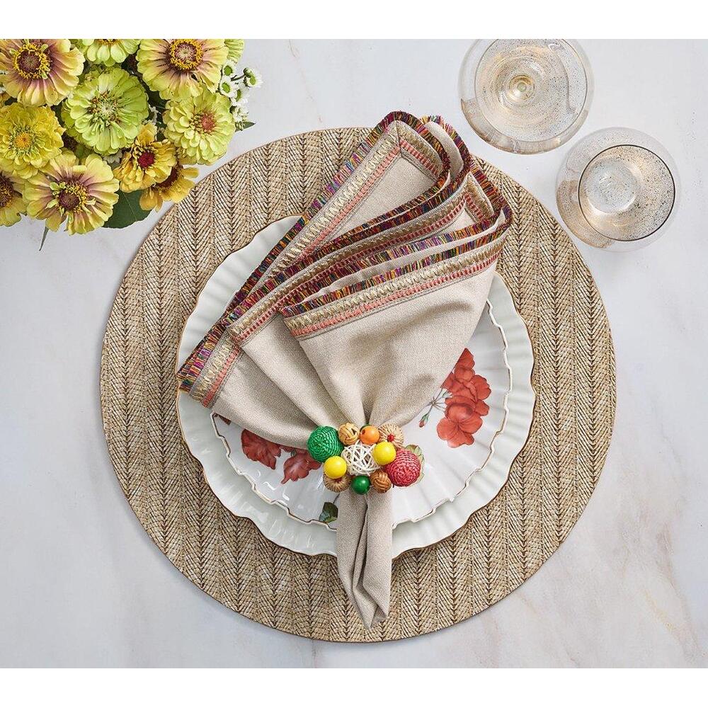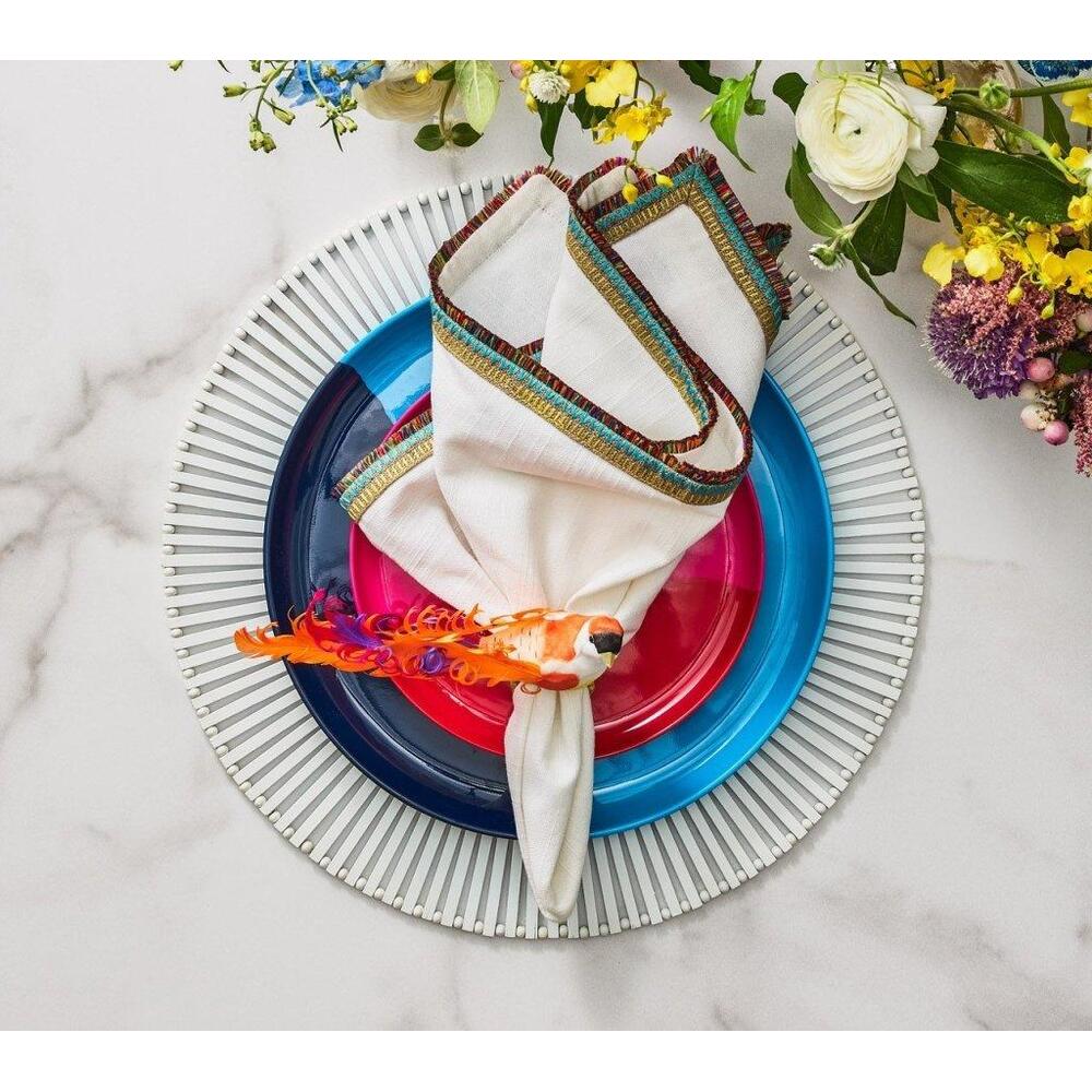 Much like their name, these napkins offer every color imaginable. Their borders are embroidered with multi-hued threads that call to mind everything from African themes to Peruvian motifs. Perfect for wanderlust-themed parties.