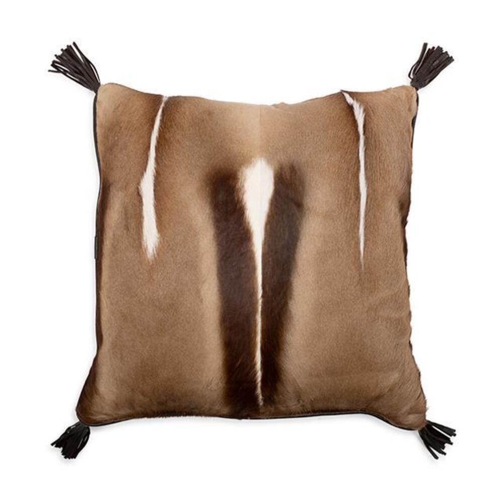 Effortlessly blending textures and natural materials, this pillow is handcrafted of ethically and sustainably sourced Springbok Hide with solid mock-suede on the reverse. A feather-and-down insert ensures long-lasting comfort. Due to the use of natural materials, each piece is unique and may vary slightly from image shown.