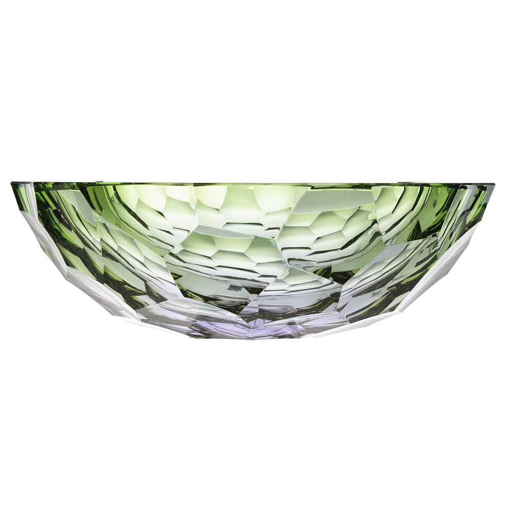 Just as the colour tones and reflections of a river change as it roars over pebbles on a sunny day, so does the light along this hand cut bowl from the Stones collection, as it continues to surprise with its diverse beauty. The cut of the stones is of variable depths, which, in combination with the high lustre, gives this designer piece of Bohemian crystal its astonishing dynamic. The subtle colours of the Moser shades of alexandrite and beryl guarantee that this hand cut glass bowl will adorn any space.