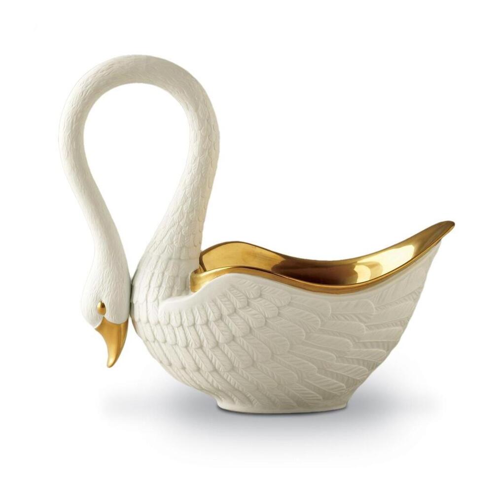 Inspired by the beautifully detailed porcelain of the 19th century Empire period, the Swan bowl nods to antiquity with modern grace. From the hand-gilded 24K gold bowl to the silky feathers on the curve of the neck, each piece is a work of art.