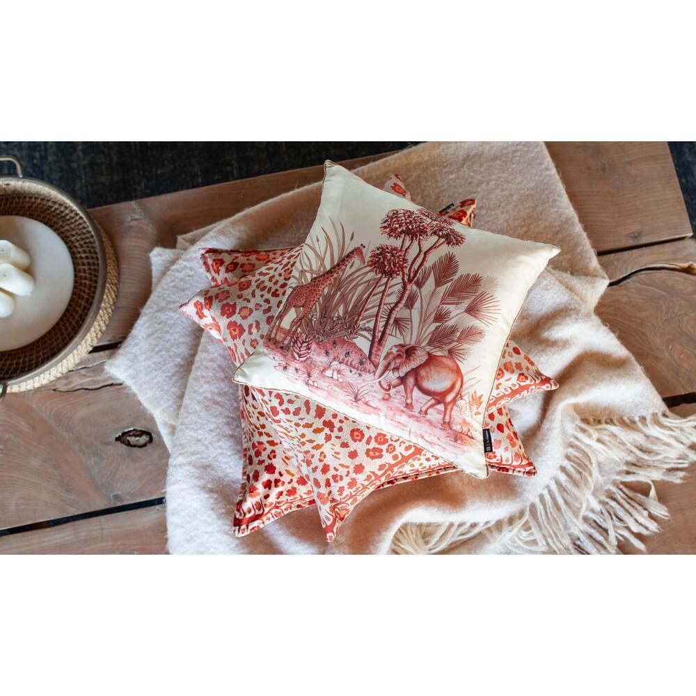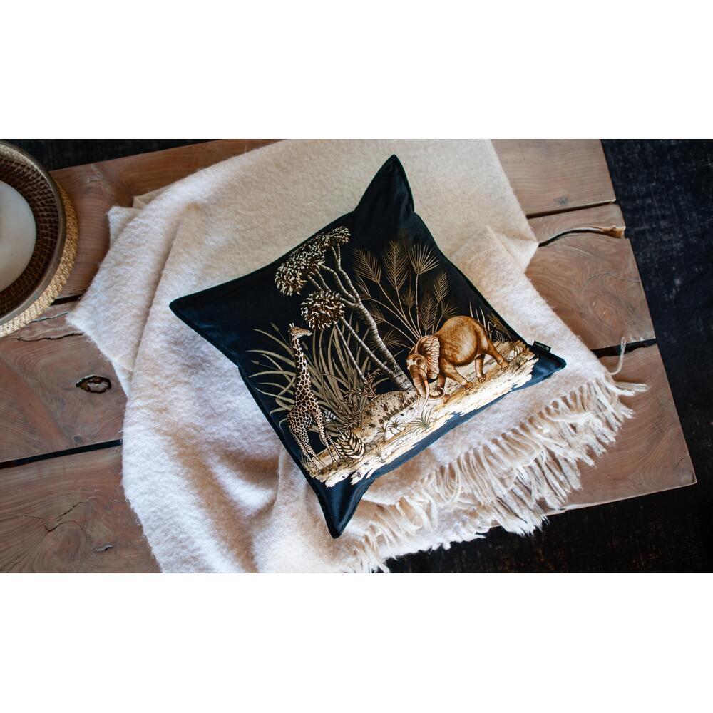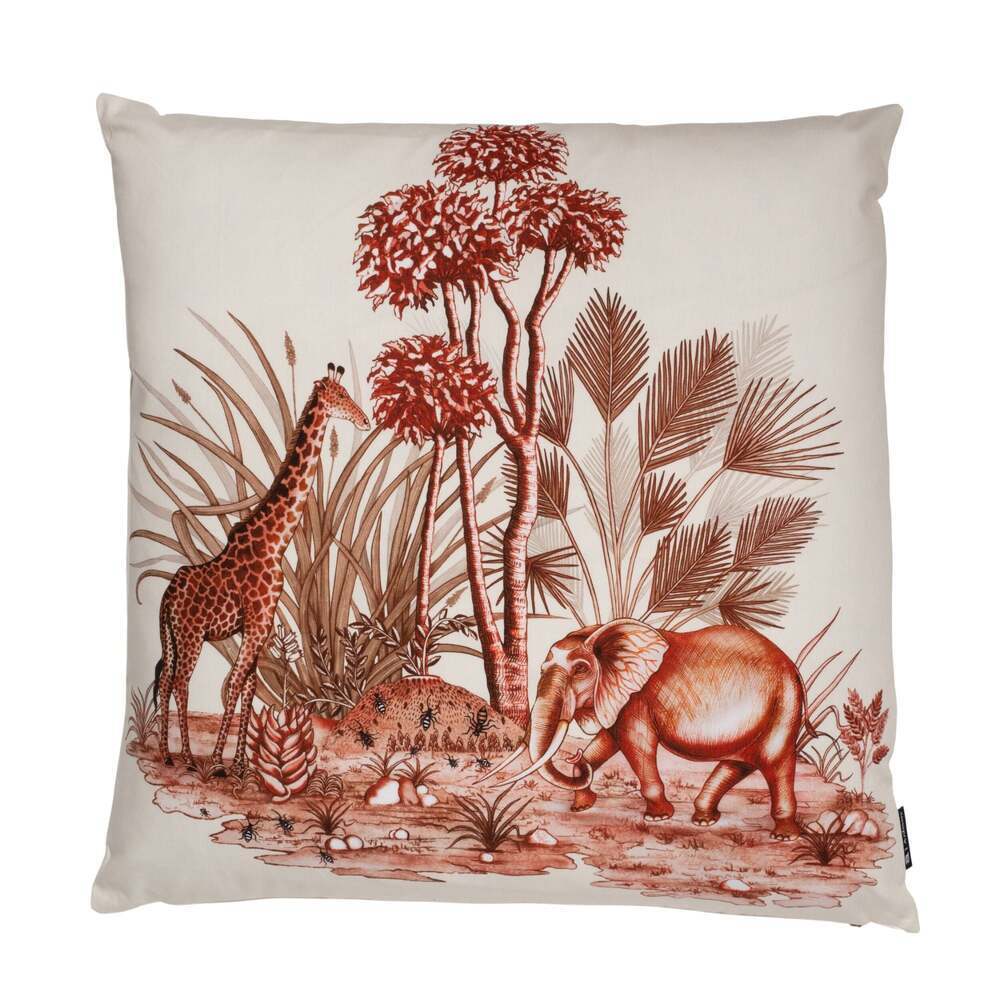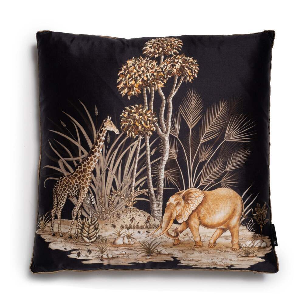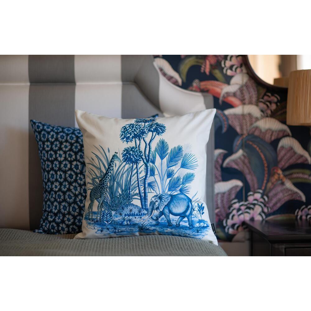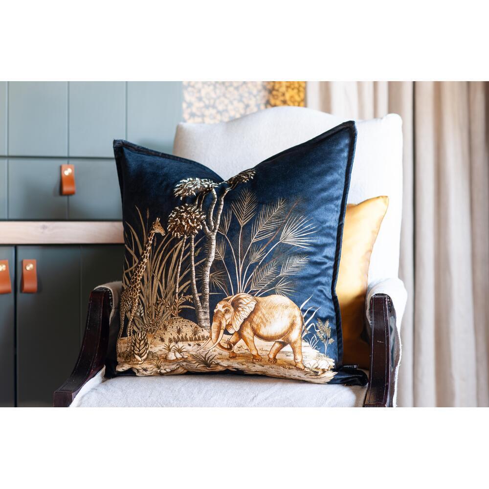Sightings of elephants, warthogs, giraffes and crowned cranes among the Candelabra Ficus and Kiepersol trees prompted the creation of the new Thanda Toile fabric design. Available in Silk, Cotton and Velvet. Every pillow cover is cut and sewn by hand in our Johannesburg workshop. A 95% feather / 5% down insert is included.