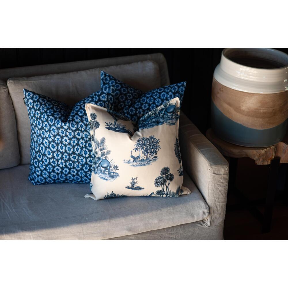 The vibrant and detailed Ardmore Design print has been digitally printed on 100% polyester. This pillow is suitable for outdoor use; however, prolonged exposure tomidday sun will eventually cause the fabric to fade. Prolonged exposure to damp will eventually cause mildew and/or mold. Outdoor pillows should be brought indoors when not in use.